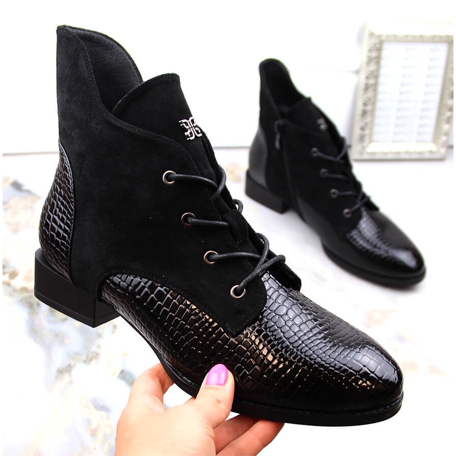 Mustat, eristetyt naisten tasakorkoiset saappaat Vinceza 16439