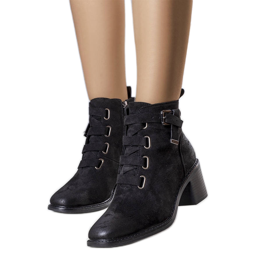 Musta eristetty saappaat Clinte -postissa - eleganssi ja mukavuus viileämpinä päivinä. 260053B-SURA tekee vaikutuksen huolellisesta työ- ja hienostuneesta yksityiskohdasta. Mokkanahka, ekologinen yläosa klassisessa, universaalisessa mustassa väreissä sopii hyvin syksyn talvi-vaatekaappiin ja matala, vakaa posti (6,5 cm) hienovaraisesti ohuet hahmot luopumatta pukeutumisen mukavuudesta.