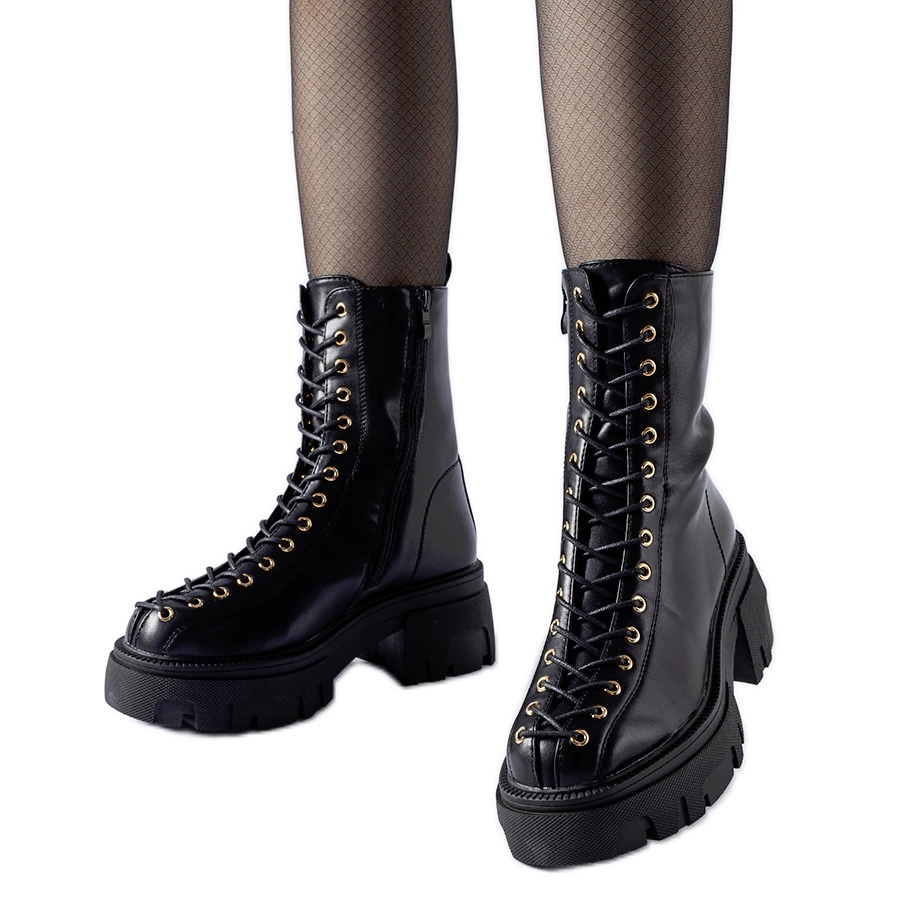 Yksityiskohdat: Mustat eristetyt saappaat koristeltu Amla-sidoksella