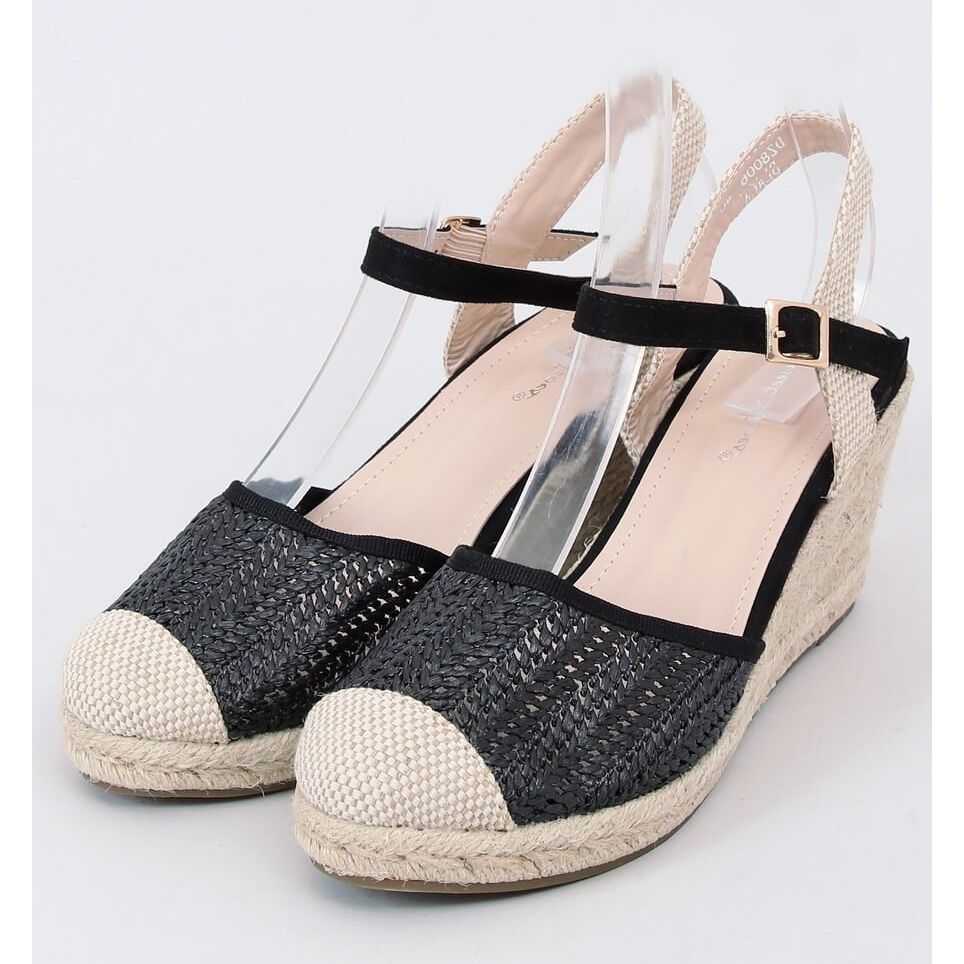 Yksityiskohdat: Mustat espadrillit kiilakannassa DZ8006 Musta beige