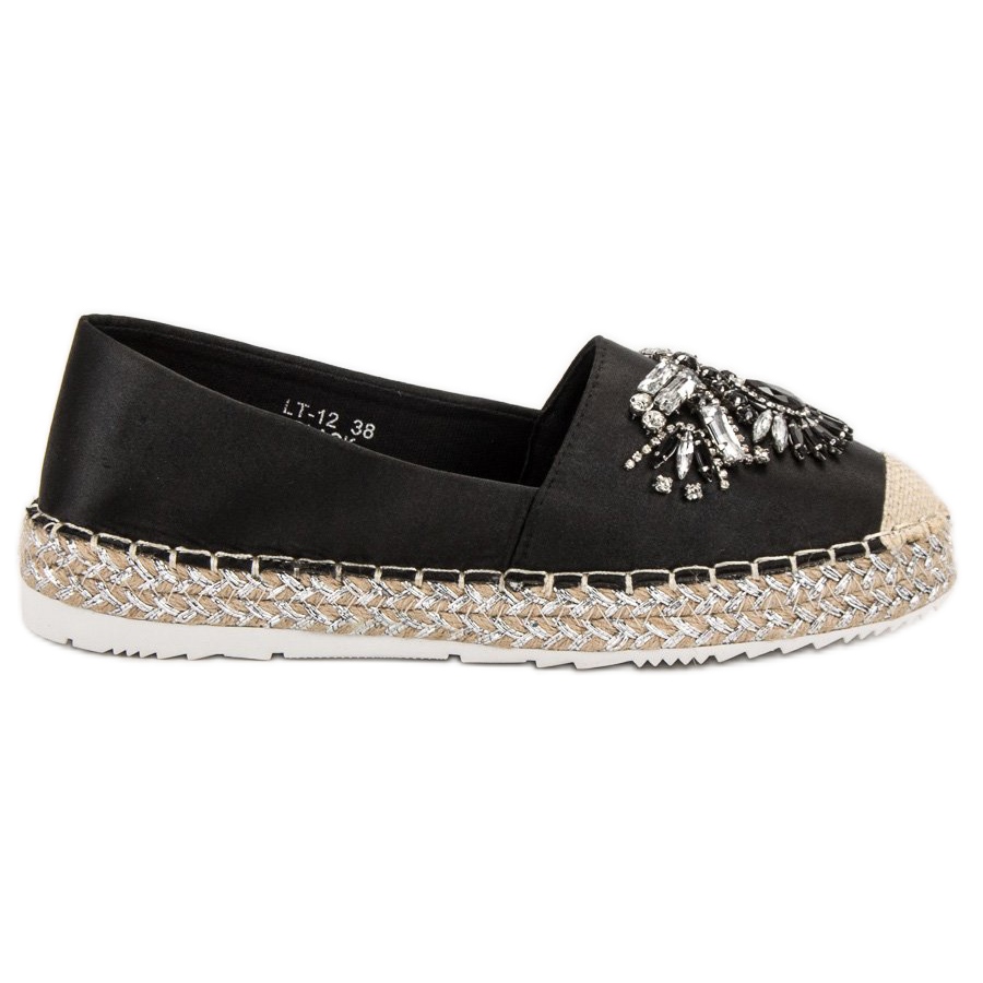 Hopeakoristeet strassikivien muodossa antavat espadrilleille omaleimaisen luonteen, joten ne täydentävät täydellisesti sekä arkiasuja että elegantimpia asuja. KeeShoes-brändin mustat koristeelliset espadrillit ovat loistava vaihtoehto kevääseen ja kesään, joka herättää varmasti huomion ja saa sinut tuntemaan olosi erityiseksi.