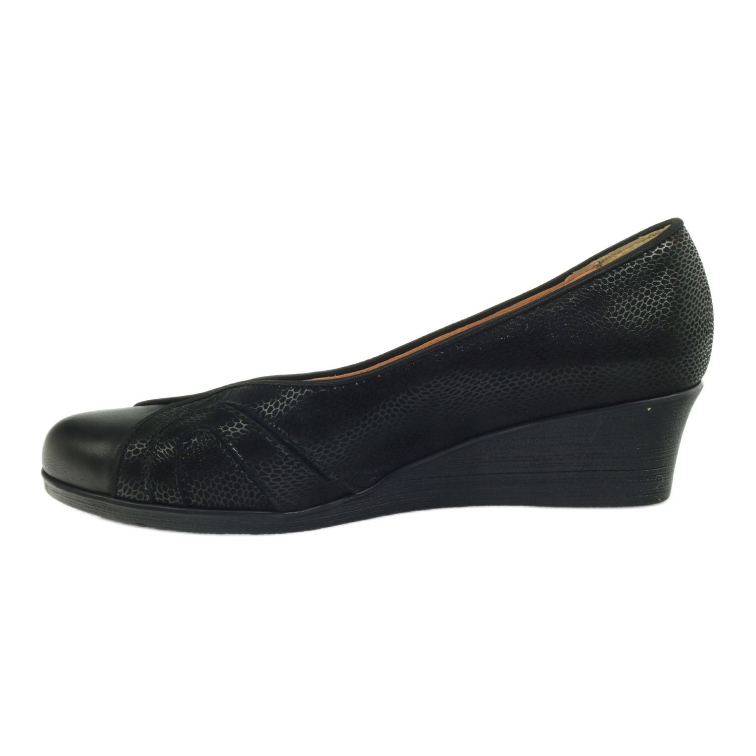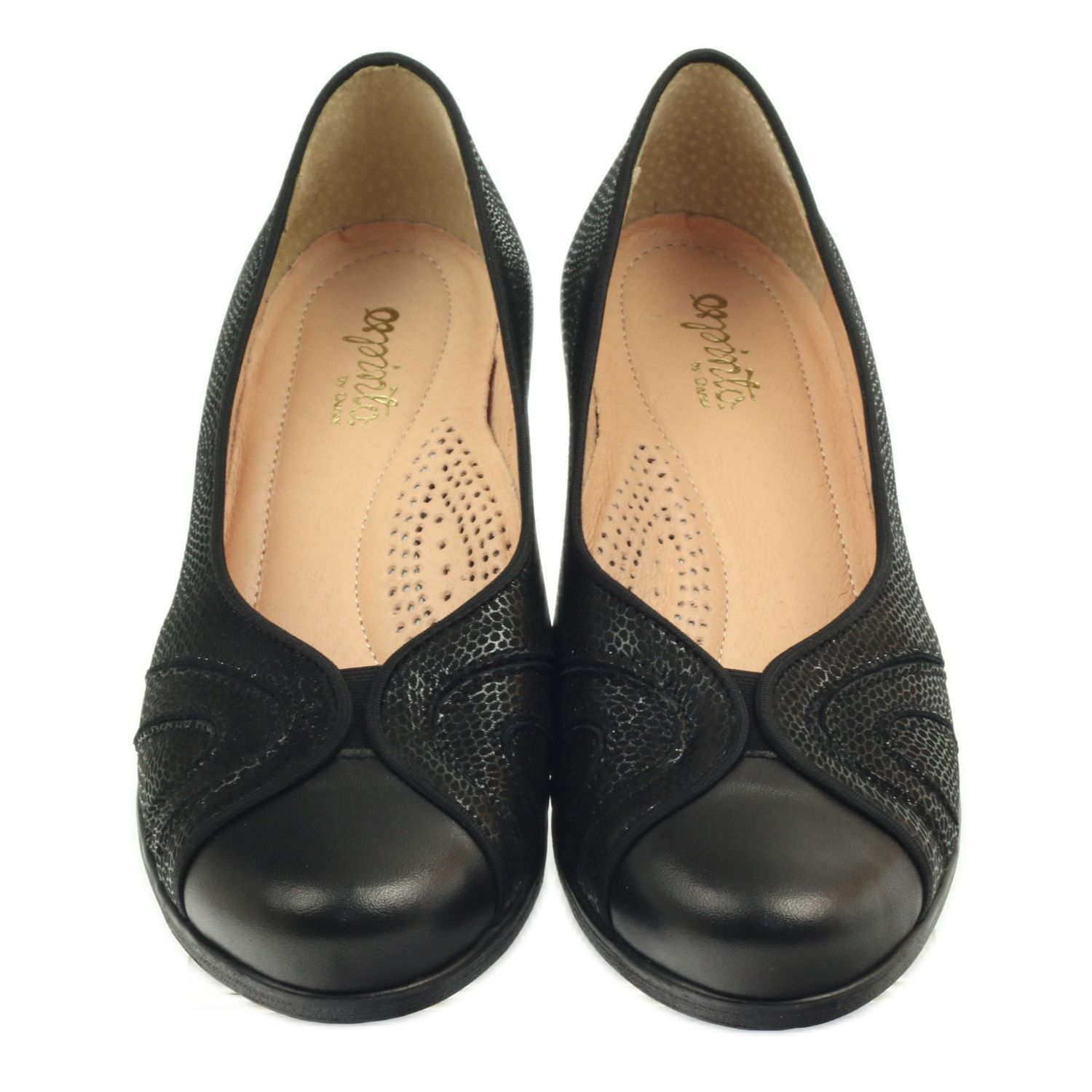 Espinton mustat kiilapumput ovat täydellinen yhdistelmä eleganssia ja mukavuutta. Malli wz.232, joka on omistettu naisille, jotka arvostavat sekä tyyliä että mukavuutta, tekee vaikutuksen klassisella muodollaan ja huolellisella työstöllä luonnollisesta, kohokuvioidusta nahasta. 4,5 cm korkea kiila lisää hienovaraista maustetta ja varmistaa samalla vakauden ja mukavuuden jokapäiväisessä käytössä.