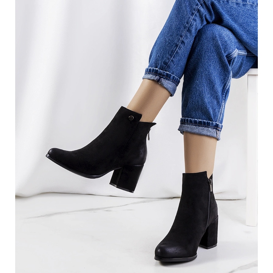 Tyylikkät, yleiset saappaat, jotka on valmistettu ekologisesta mokkanahasta. Malli, jonka ajaton, hoikka leikkaus (Spitz -nenä) on upotettu stabiiliin pylvääseen (lohko), jonka korkeus on 7 cm, saavuttaen nilkan - ihanteellinen jokapäiväiseen ja iltatyyliin.