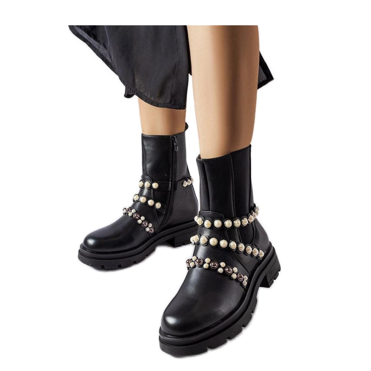 Yksityiskohdat: Mustat helmillä koristellut saappaat