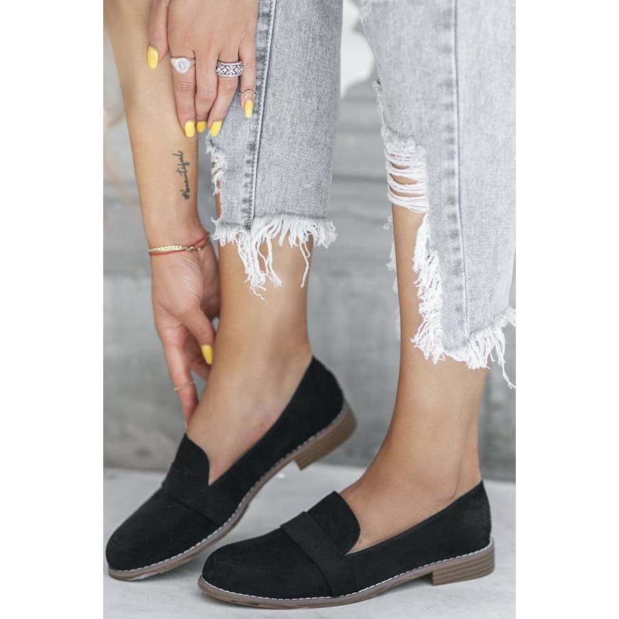 Black Georgia tasakorkoiset lordit ovat malli, josta tulee varmasti välttämätön elementti jokaisessa tyylikkäässä ja tyylikkäässä vaatekaappissa. Valmistettu korkealaatuisista materiaaleista, mukaan lukien ekologinen mokkanahka, ne tarjoavat paitsi esteettisen ulkonäön myös käyttömukavuuden. Pyöreä kärki ja ominainen leikkaus hihnalla saavat nämä kengät näyttämään muodikkailta ja hienovaraisilta.