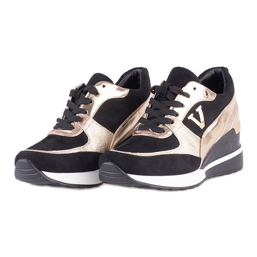 Vinceza Vinceza Mustat ja kullanväriset naisten Potocki-lenkkarit kiilakorolla kultainen