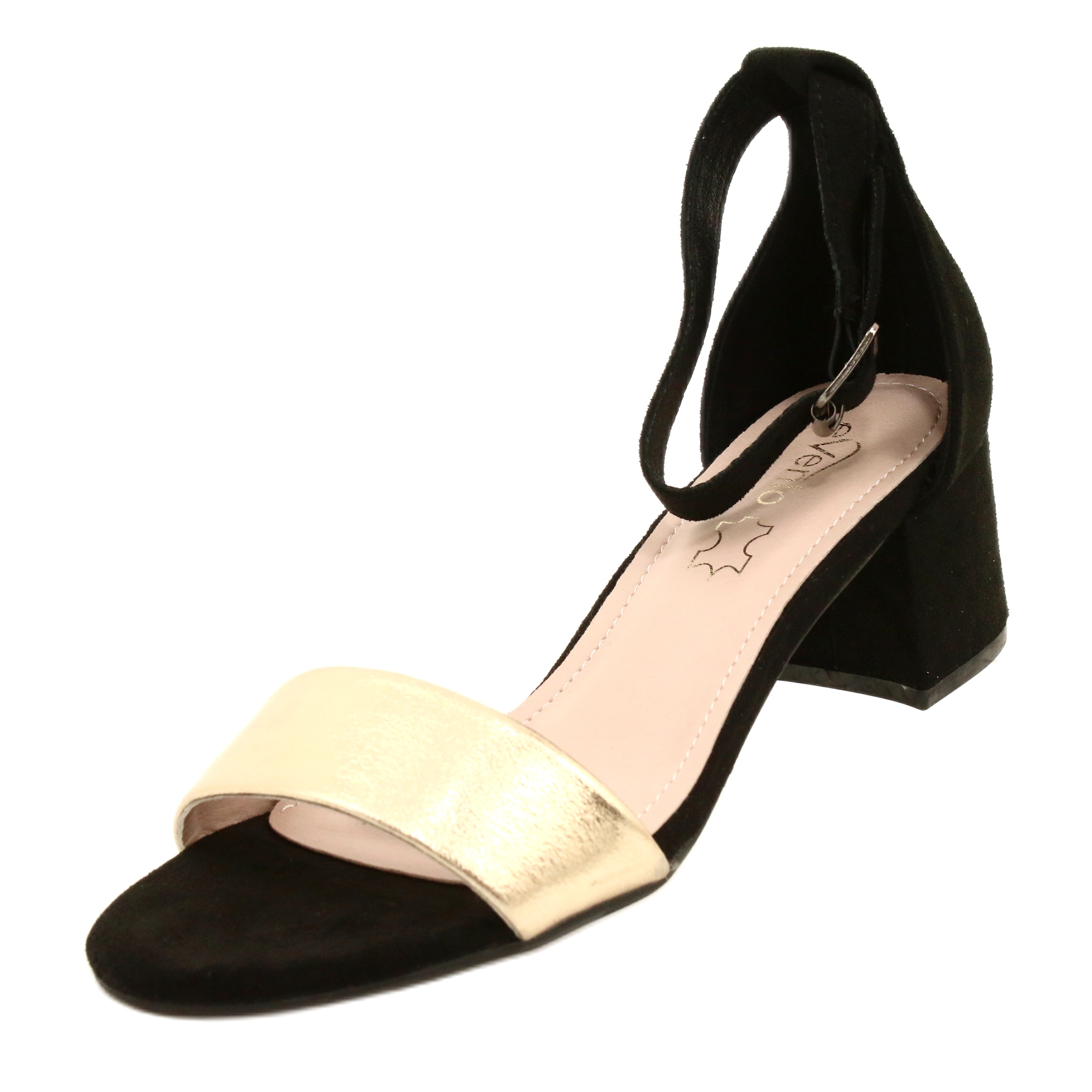Evento 20SD98-1618 korkeakorkoiset sandaalit mustalla ja kullalla ovat elegantteja ja tyylikkäitä jalkineita, jotka sopivat kaikkiin tilaisuuksiin. Laadukkaista materiaaleista valmistettu mokkanahkapäällinen yhdistettynä ekologiseen nahkaan luo harmonisen kokonaisuuden, joka kiinnittää huomiota ja korostaa ainutlaatuista tyyliä.
