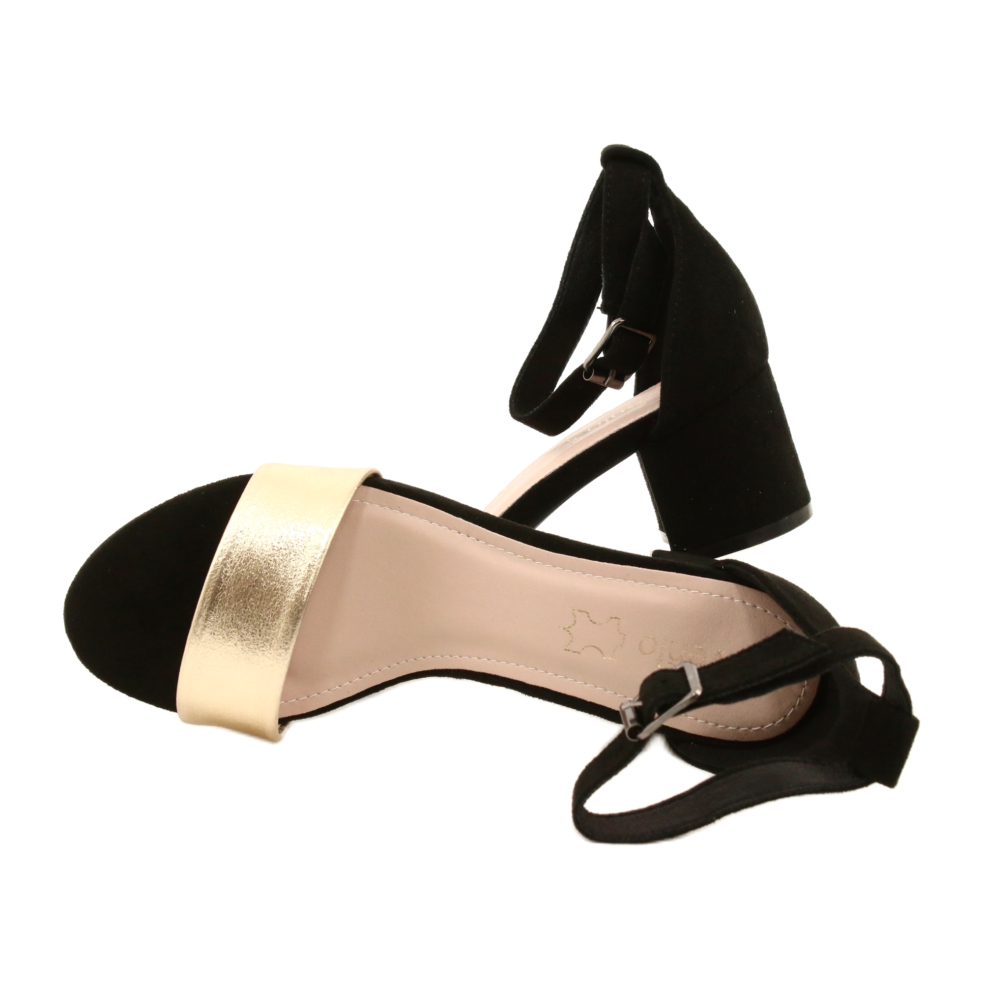 Yksityiskohdat: Mustat ja kultaiset sandaalit baarissa Evento 20SD98-1618 kultainen