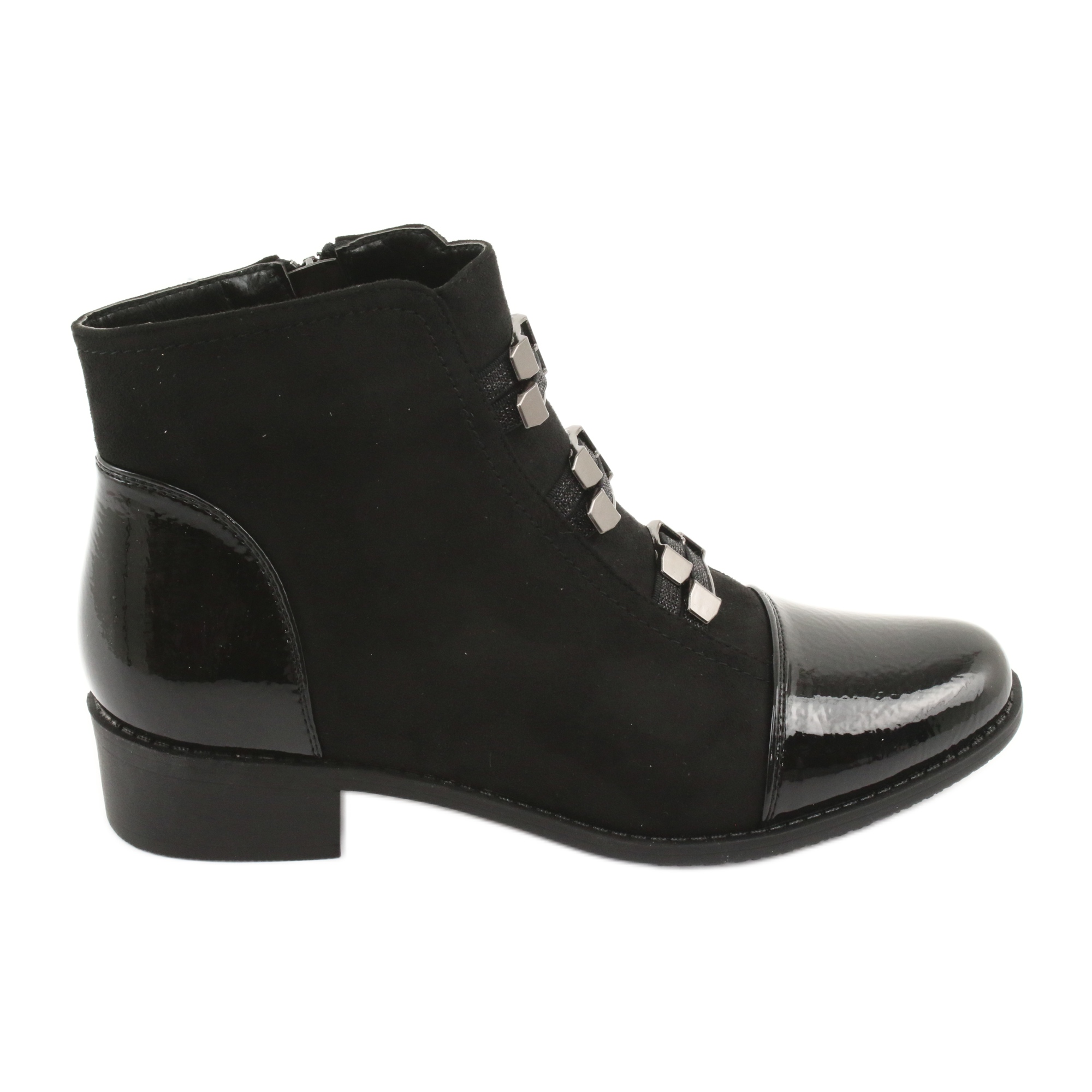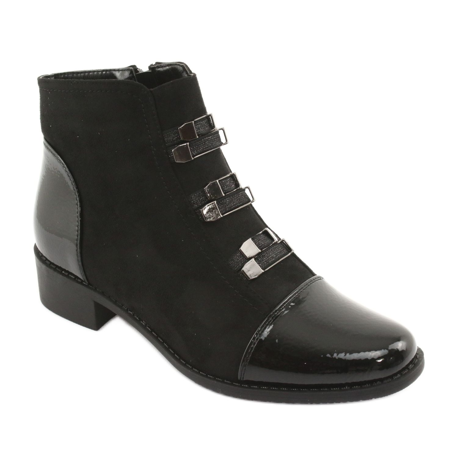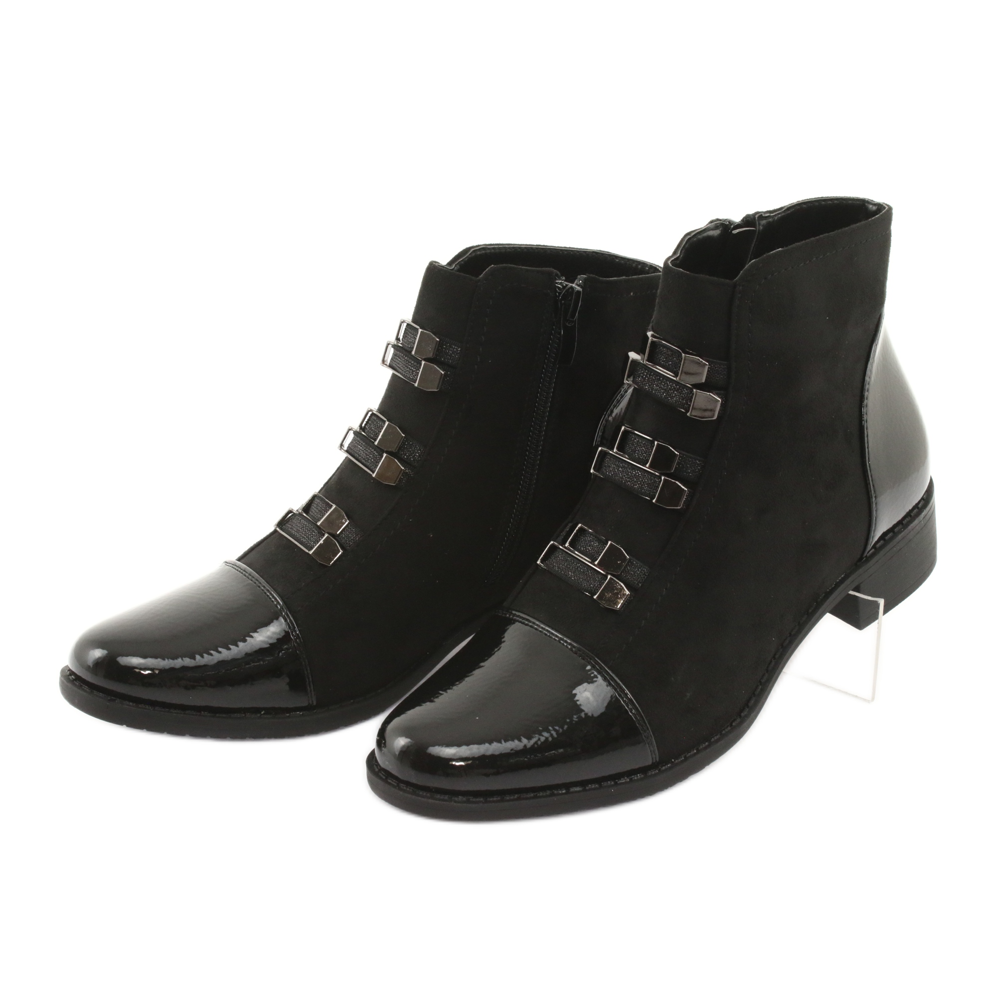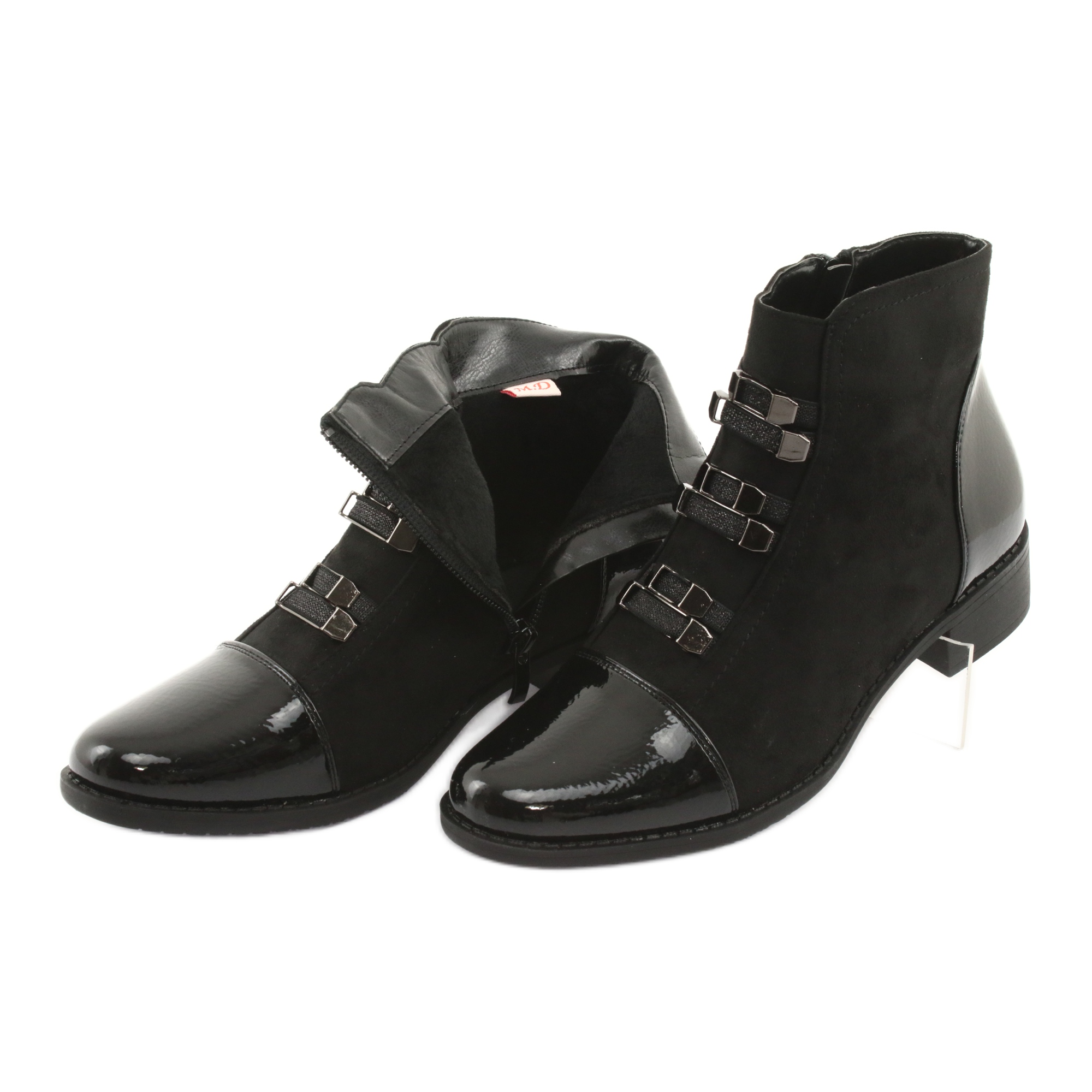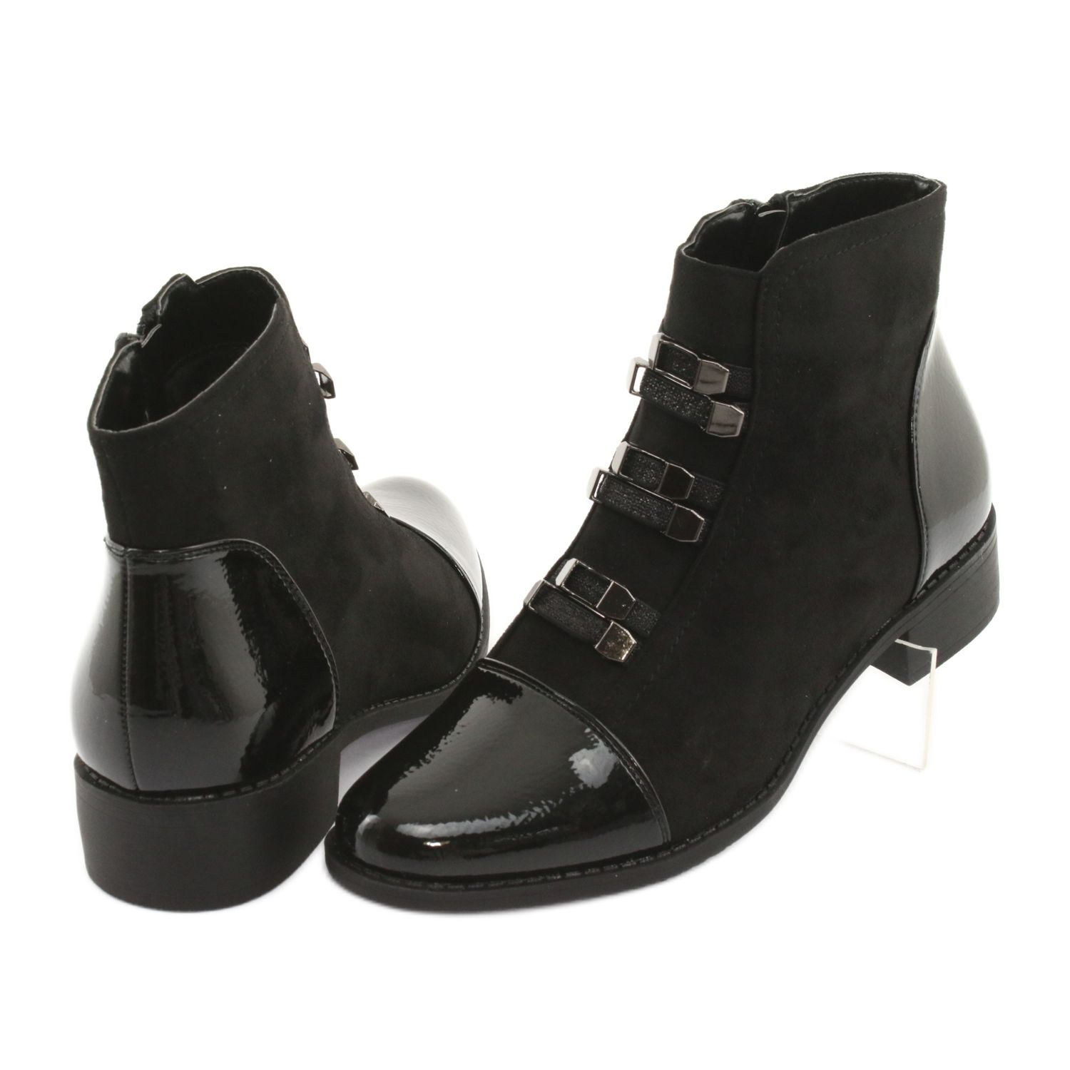 Saappaille on ominaista tasainen kantapää ja alkuperäinen koristelu, joka on herkät soljet edessä, mikä antaa niille modernin luonteen. Malli on vuorattu pehmeällä mustalla turkilla, mikä takaa mukavuuden ja lämmön myös kylmimpinä päivinä. Tilaisuudesta riippumatta ne ovat loistava valinta kaikkiin vuodenaikoihin.