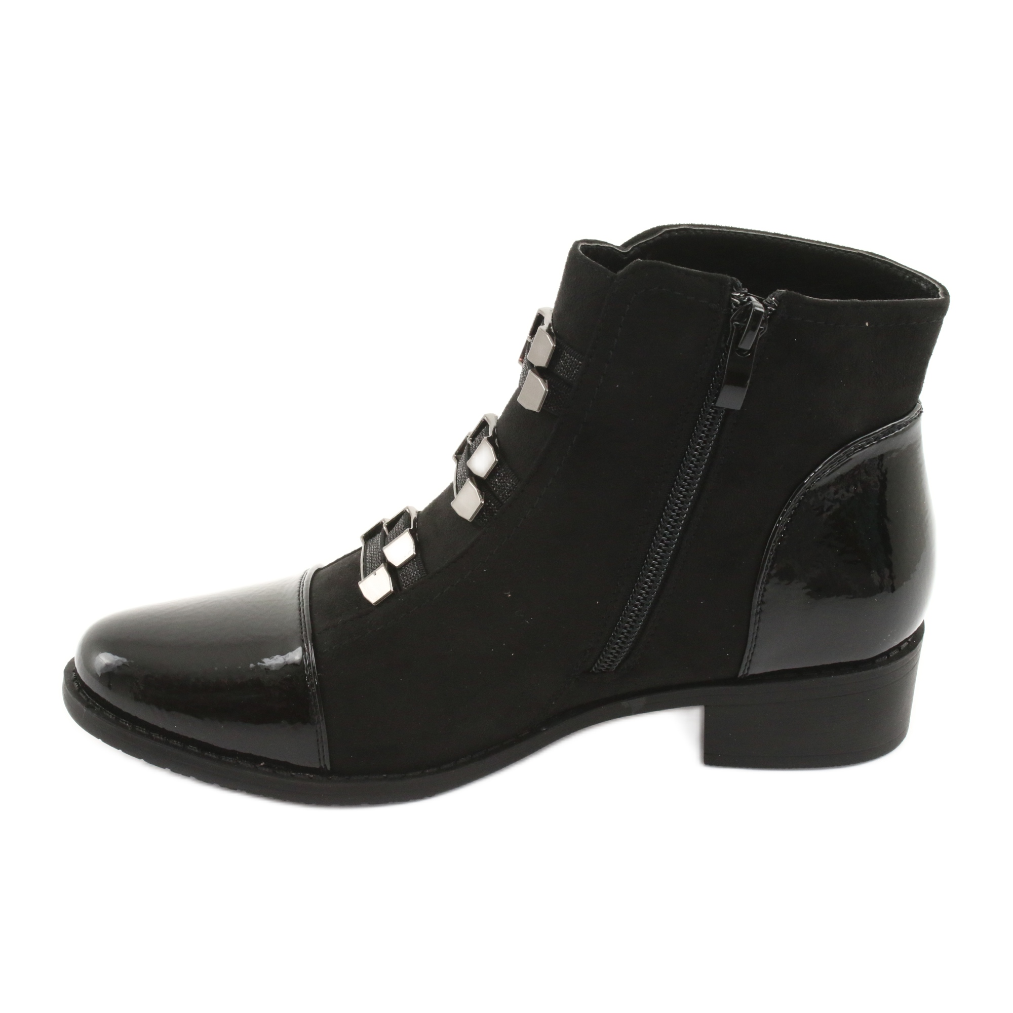 M.Daszyńskin mustat Chelsea-saappaat ovat täydellisiä jalkineita, joissa eleganssi yhdistyy mukavuuteen. Nämä saappaat on valmistettu korkealaatuisesta ekologisesta nahasta yhdistettynä mokkanahkaiseen pintaan ja kiiltonahkaiseen etuosaan. Nämä saappaat kiinnittävät huomiota tyylikkäällä tyylillään. Klassisen mustan värinsä ansiosta ne sopivat täydellisesti erilaisiin tyyleihin, arkisesta muodollisempaan.