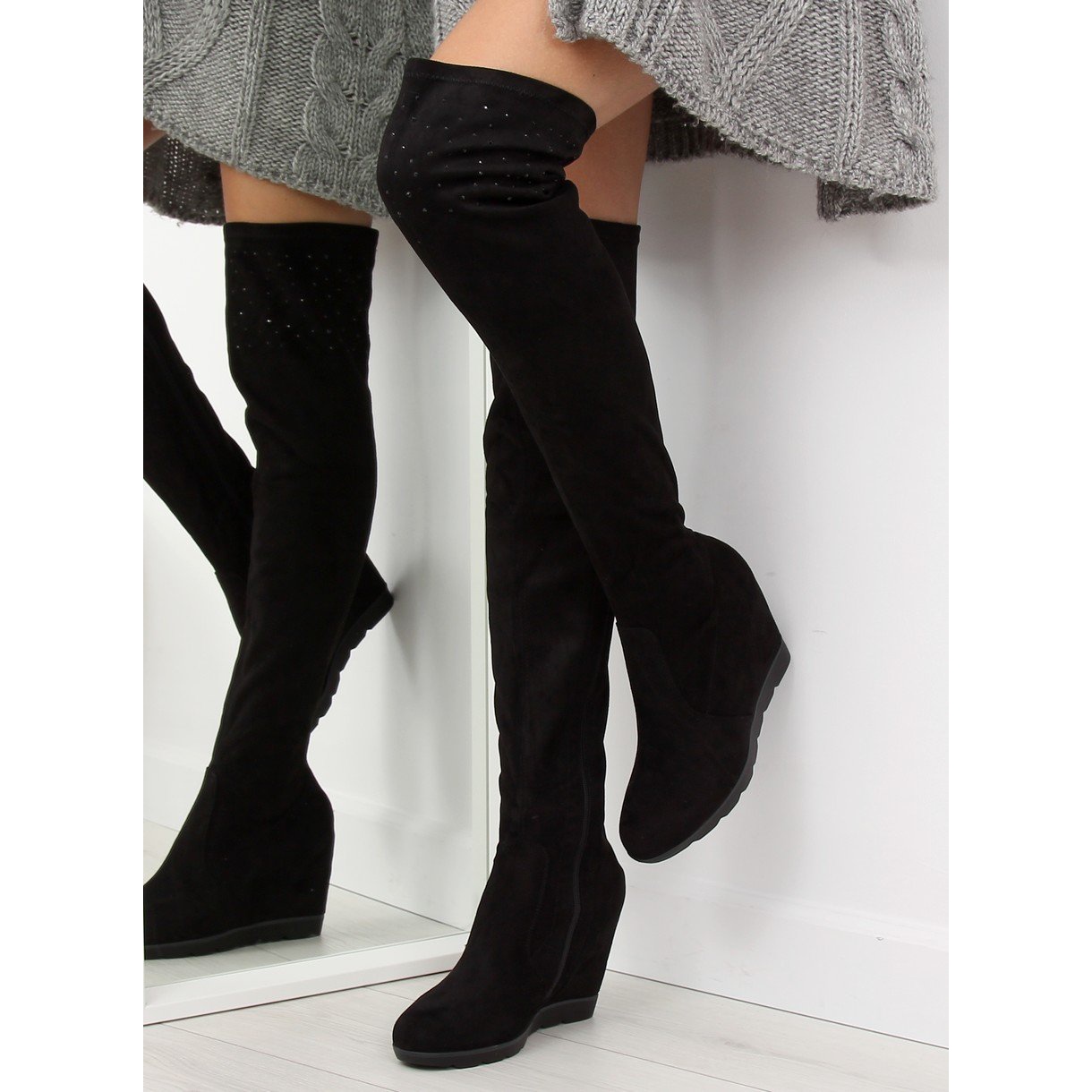 Löydä ainutlaatuinen tyyli ja eleganssi K-59 kiilamuskettisoturilla klassisessa mustassa värissä. Nämä upeat naisten kengät, jotka on suunniteltu modernia naista ajatellen, yhdistävät täydellisesti muotin ja mukavuuden. Korkea polven yläpuolelle ulottuva, hienovaraisilla kivillä koristeltu yläosa ei vain hoivaa vartaloa, vaan lisää myös tyylikkyyttä mihin tahansa tyyliin.