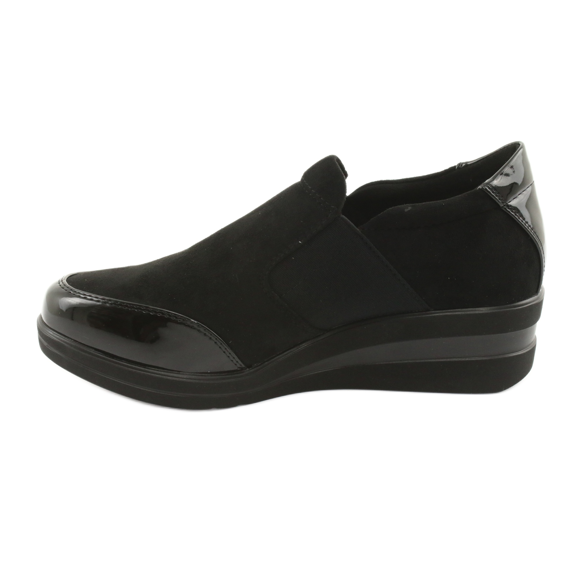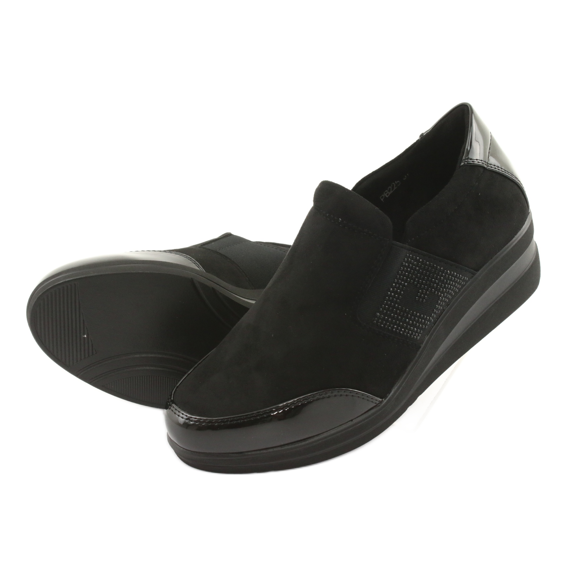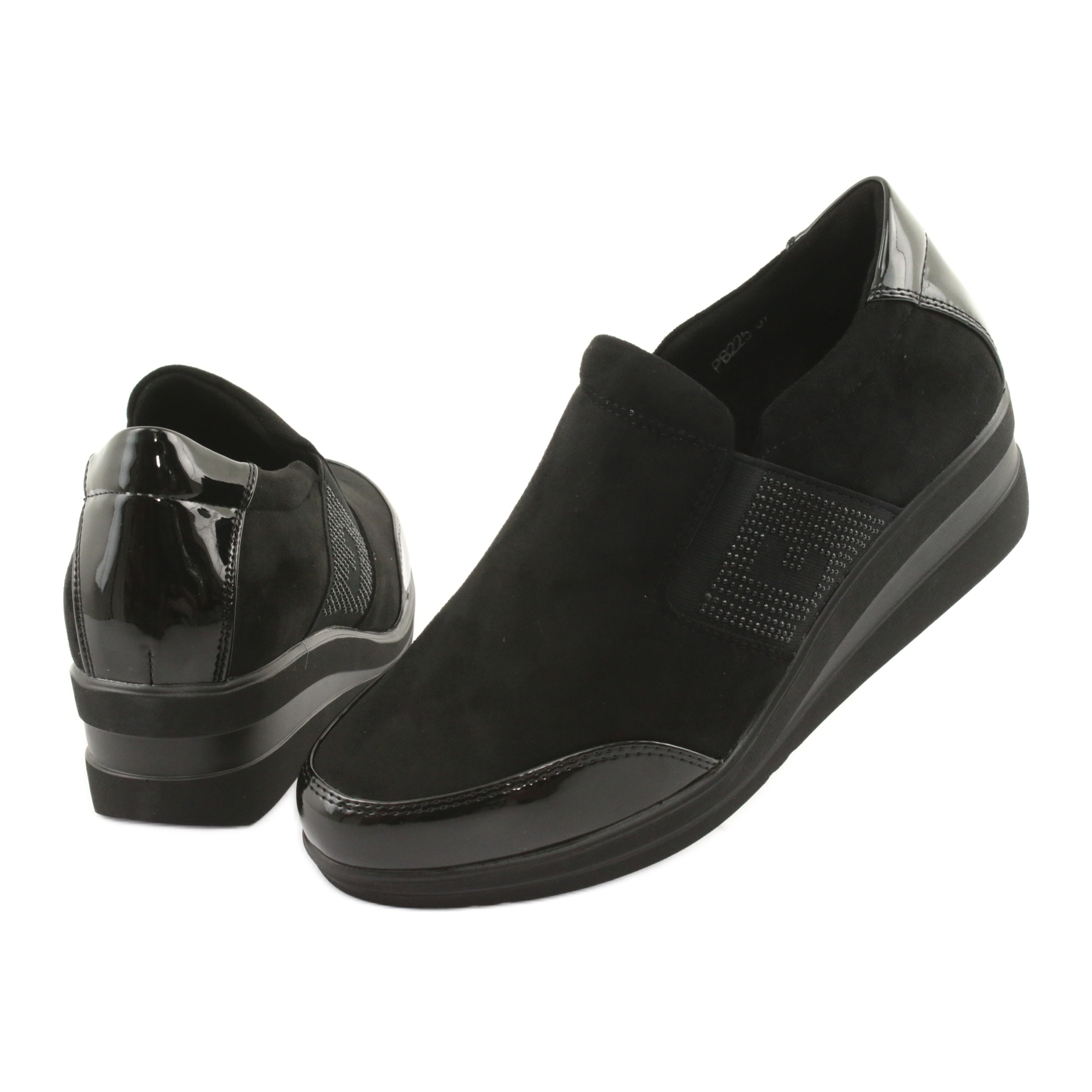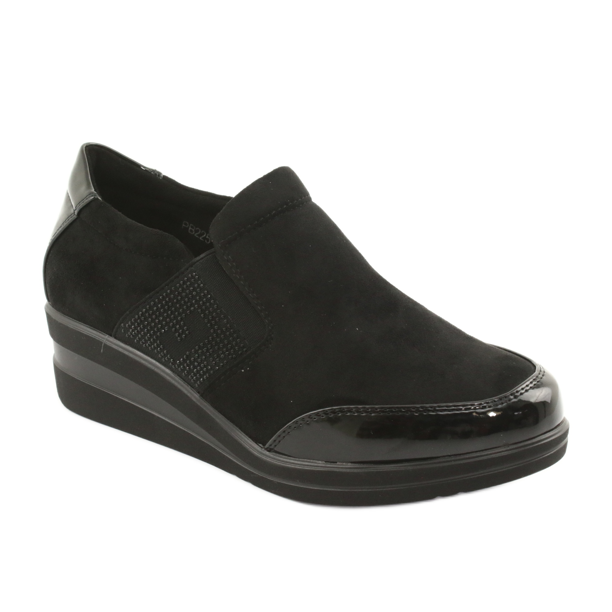 Löydä eleganssin ja mukavuuden kauneus Sergio Leone 225 -kiilakenkien avulla Nämä näyttävät mustat naisten kengät ovat välttämättömiä jokaisen tyylikkäitä ja moderneja ratkaisuja arvostavan naisen vaatekaapissa. Valmistettu korkealaatuisesta ekologisesta mokkanahasta ja kiinnitetty huomiota yksityiskohtiin, ne takaavat täydellisen ulkonäön, mutta myös käyttömukavuuden nahkaisen sisäosan ansiosta.