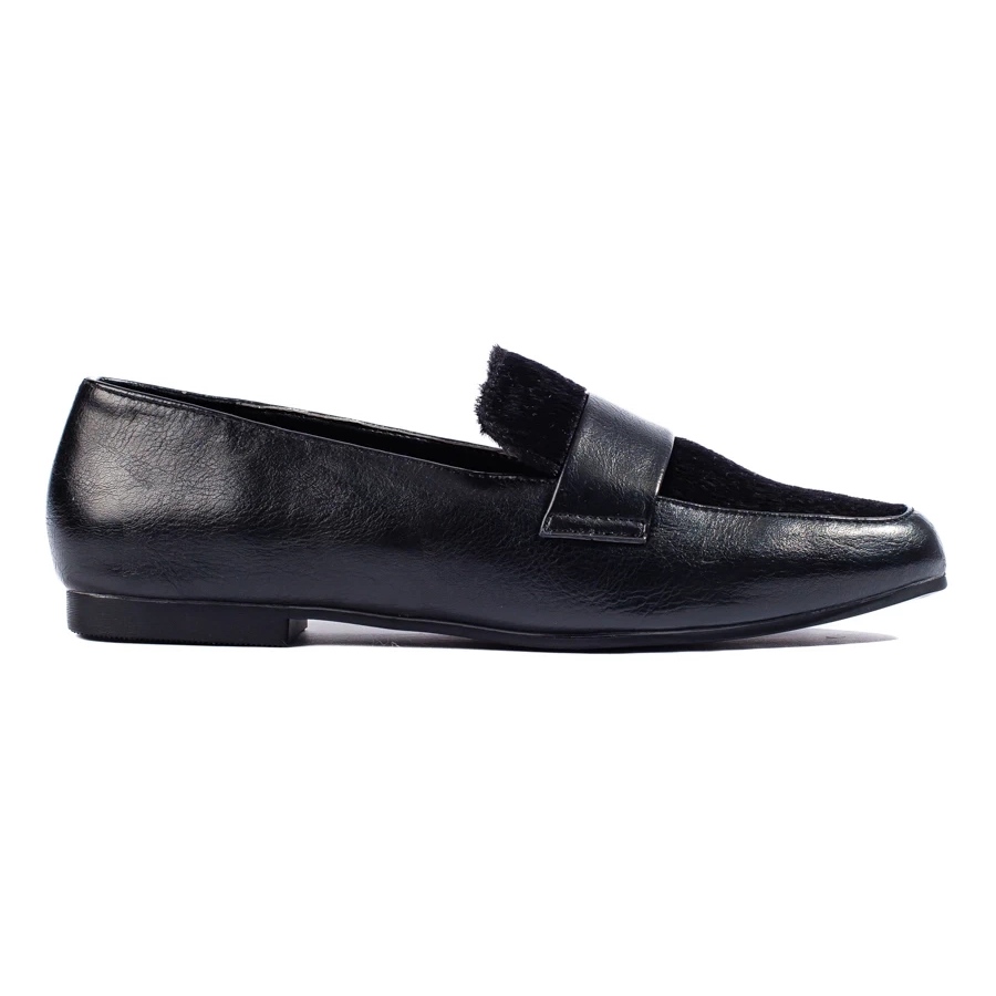 Tyylikkät ja mukavat mustat leipät mustalla, koristeltu pehmeällä turkisilla. Täydellinen joka päivä ja juhlallisiin tilanteisiin - ne yhdistävät rento hahmon muodikkaan, naisellinen aksentti.
