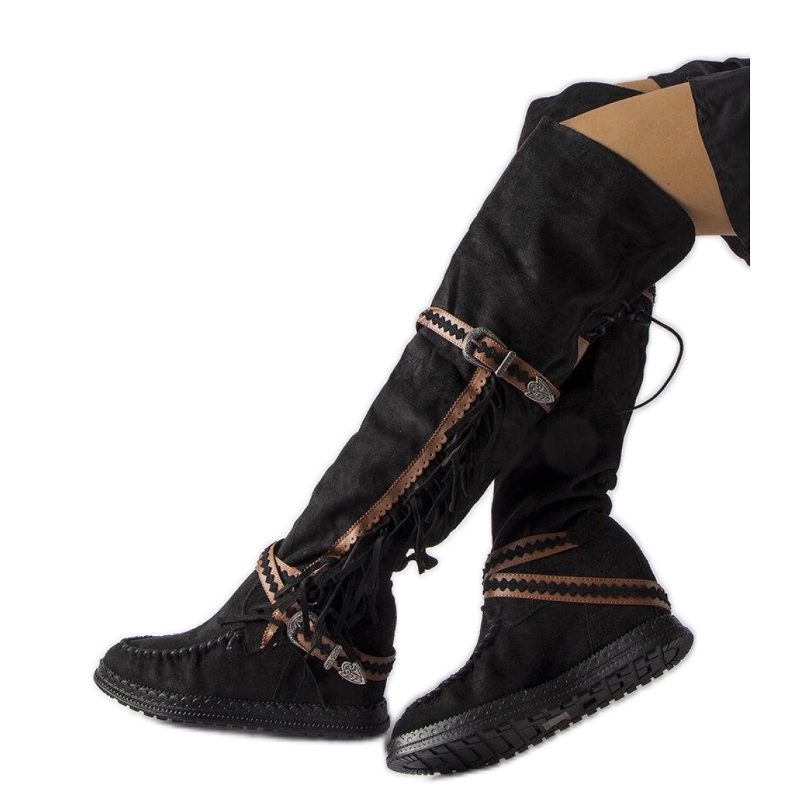 Mustat kiilasaappaat ovat pakollisia jokaiselle muodikkaalle naiselle, joka haluaa yhdistää eleganssin mukavuuteen. Näillä tyylikkäällä muskettisoturilla, jotka saavuttavat polven yli, on kaikki tarvittava talvi -vaatekaapin avaintekijäksi. Valmistettu korkealaatuisesta ekologisesta mokkanahasta, ne näyttävät erittäin houkuttelevilta ja niiden musta väri sekoittuu täydellisesti erilaisilla tyylillä.