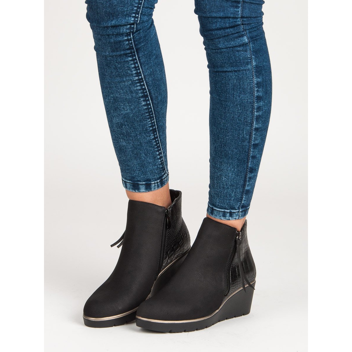 Löydä täydellinen tyylin ja mukavuuden yhdistelmä Filippon mustissa kiilakengissä. Tämä on täydellinen tarjous naisille, jotka arvostavat eleganssia ja toimivuutta jokapäiväisissä jalkineissa. Nämä korkealaatuisesta ekologisesta nahasta valmistetut nilkkurit eivät vain näytä hyvältä, vaan ovat myös ympäristöystävällisiä.