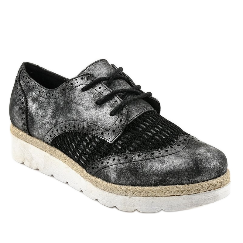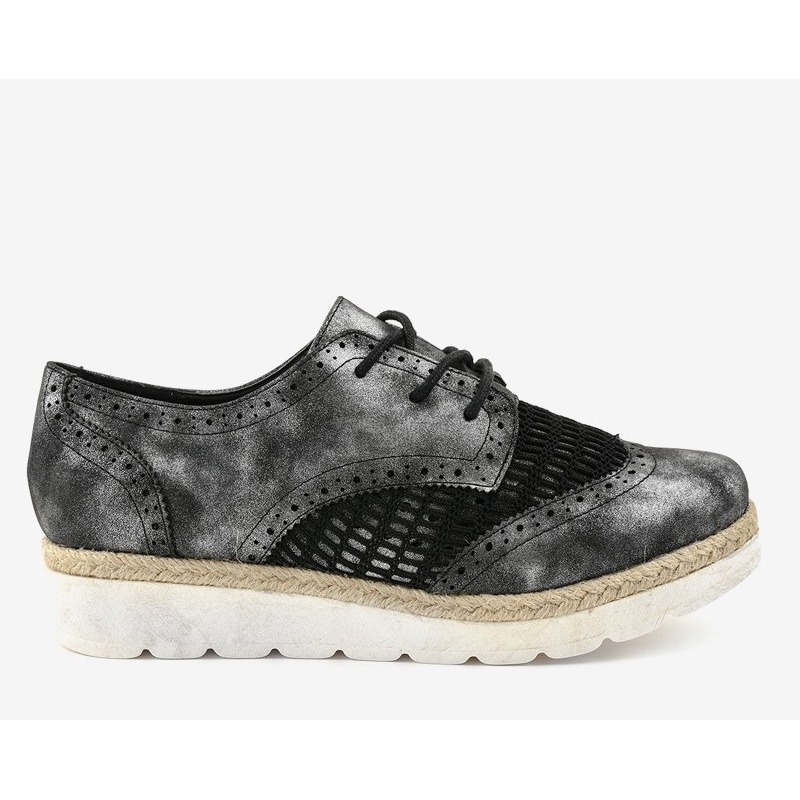 Musta päällinen, jossa on pyöreä kärki ja nauhakiinnitys, tekee tästä mallista täydellisen istuvan mihin tahansa jalkaan, mikä takaa mukavan päivittäisen käytön. Lisäetuna on valkoisen synteettisen pohjan ympärille kiedottu juuttinauha, joka antaa kengille ainutlaatuisen luonteen.