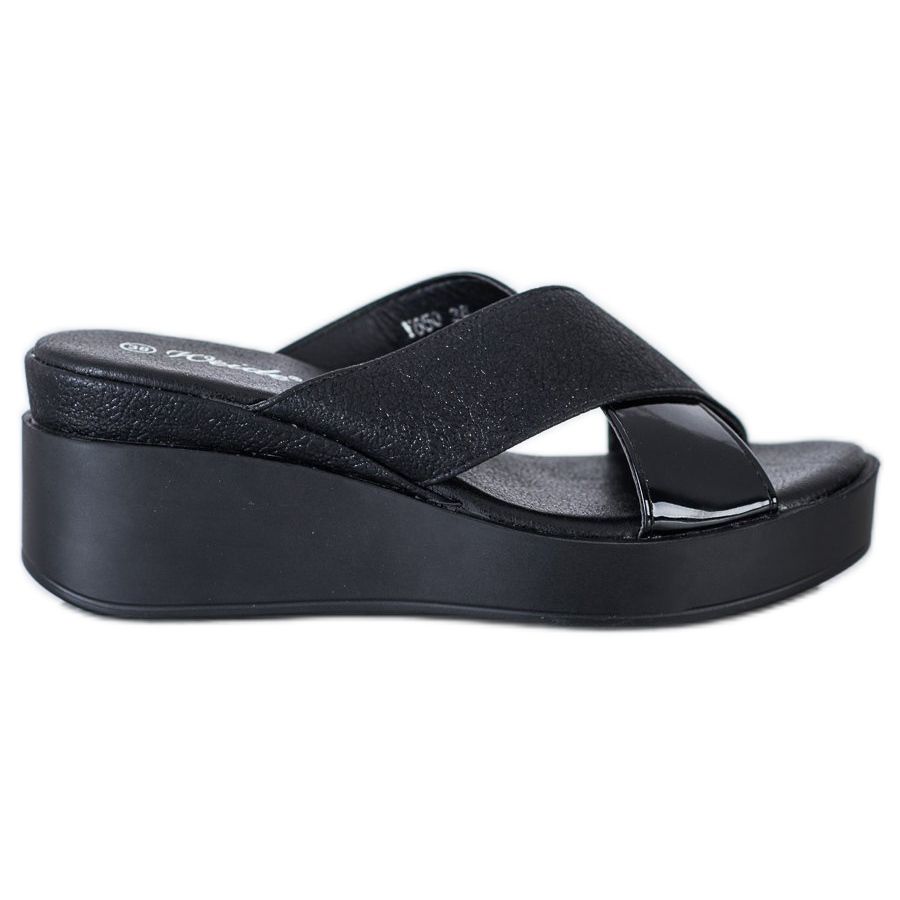 Löydä mukavuuden ja tyylin uusi ulottuvuus Weiden mustilla kiilamuuleilla. Nämä tyylikkäät varvastossut ovat täydellinen valinta naisille, jotka arvostavat mukavuutta ja muodikasta ilmettä joka päivä. Se on valmistettu laadukkaasta keinonahasta, sekä ulkoa että sisältä, ja ne ovat kestäviä ja helppoja puhdistaa, ja minimalistisen muotoilunsa ansiosta ne sopivat moniin tyyleihin.