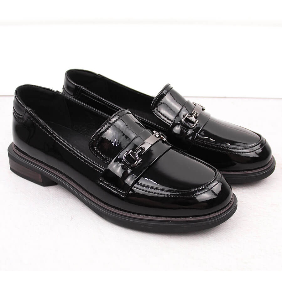 Yksityiskohdat: Mustat kiiltonahkaiset naisten kengät Filippo DP6306/24