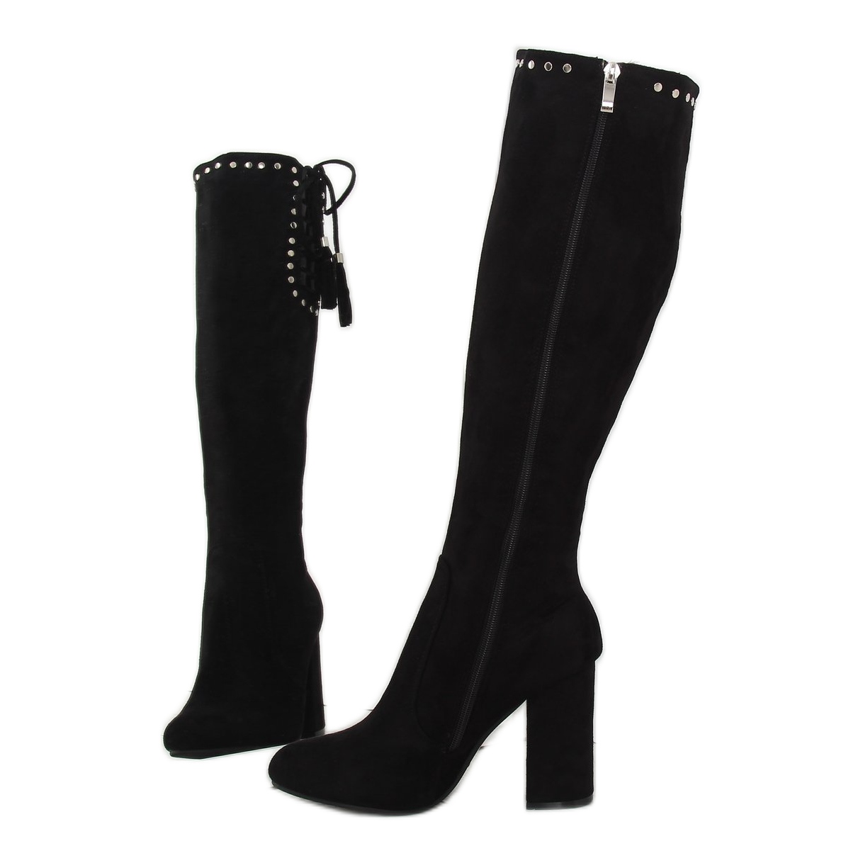 Tutustu klassiseen tyyliin ja mukavuuteen yhdessä uusimmista korkeakorkoisten saappaiden malleista! Nämä tyylikkäät mustat korkealaatuisesta ekologisesta mokkanahasta valmistetut saappaat ovat täydellinen valinta naisille, jotka arvostavat sekä muodikasta ulkonäköä että mukavuutta.