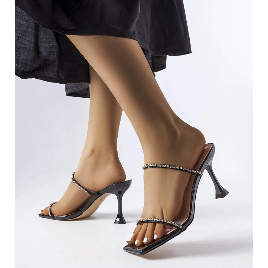 Yksityiskohdat: Mustat korkeakorkoiset sandaalit Paso strassit
