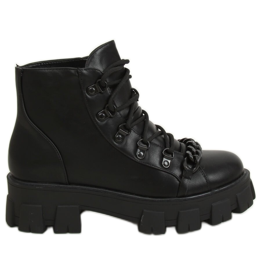 Esittelemme NC1106 Black nauhasaappaat korkealla pohjalla, jotka ovat täydellinen yhdistelmä muodikas muotoilu ja mukavuus. Nämä tyylikkäät, ajattoman mustat saappaat kiinnittävät varmasti monien naisten huomion. Ne antavat tunnusomaisen siluettinsa korkealle, 5 cm korkealle pohjalle ja silmiinpistävälle ketjulle edessä, joka lisää ilmaisua ja ainutlaatuista tyyliä.