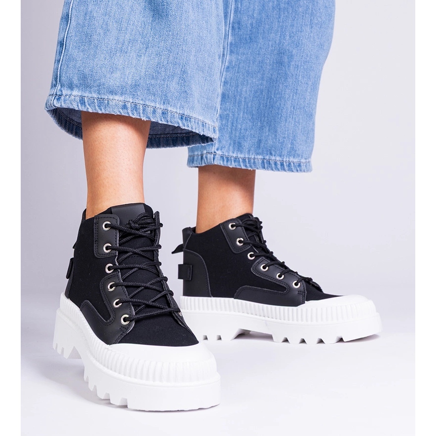Grotta mustat high platform tennarit ovat ehdotus naisille, jotka arvostavat mukavuuden, tyylin ja rohkeiden muotiratkaisujen yhdistelmää. Valmistajan "inna" tarjoamat tennarit ovat täydellinen vastaus katuvaatteiden nykytrendeihin.