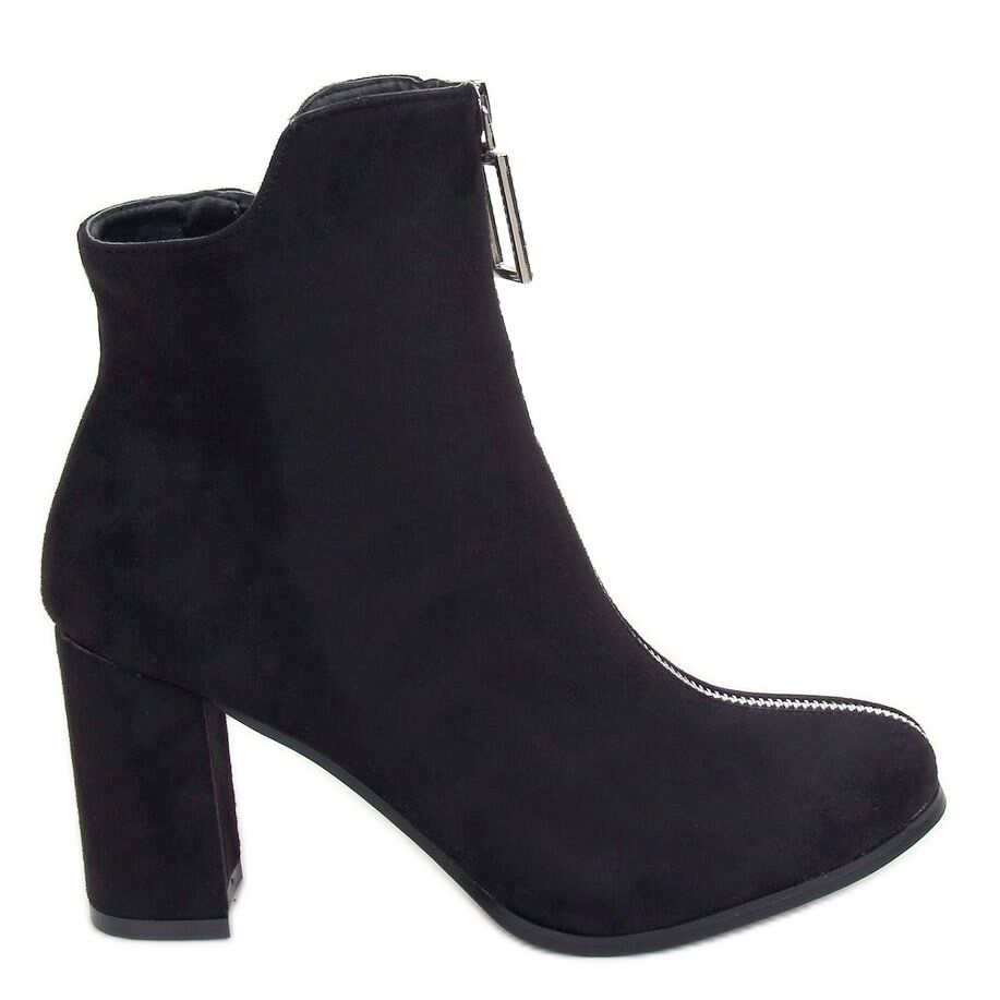 Tutustu eleganssiin ja ainutlaatuiseen tyyliin Inna Markin mustilla korkeakorkoisilla nilkkureilla 0-320 Black! Nämä mokkanahkaiset naisten nilkkurit, jotka on asennettu vakaaseen 7,5 cm korkeaan kantapäähän, lisäävät viehätysvoimaa mihin tahansa tyyliisi. Klassinen musta väri sopii täydellisesti yhteen hienovaraisen hopean vetoketjun ja kiiltävän koristeen kanssa, joka houkuttelee kaikkia katseita.