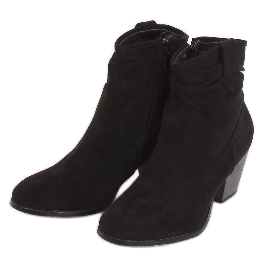 Löydä ainutlaatuinen tyyli mustilla korkeakorkoisilla nilkkureilla 100-986B0-2 Black! Nämä naisten mokkanahkanilkkurit ovat täydellinen yhdistelmä eleganssia ja mukavuutta, ja ne sopivat täydellisesti mihin tahansa tyyliin. Heidän moderni leikkaus cowboy-saappaat muodikkaasti röyheltetyllä päälliköllä herättää huomion ja lisää luonnetta arkiasuisi.