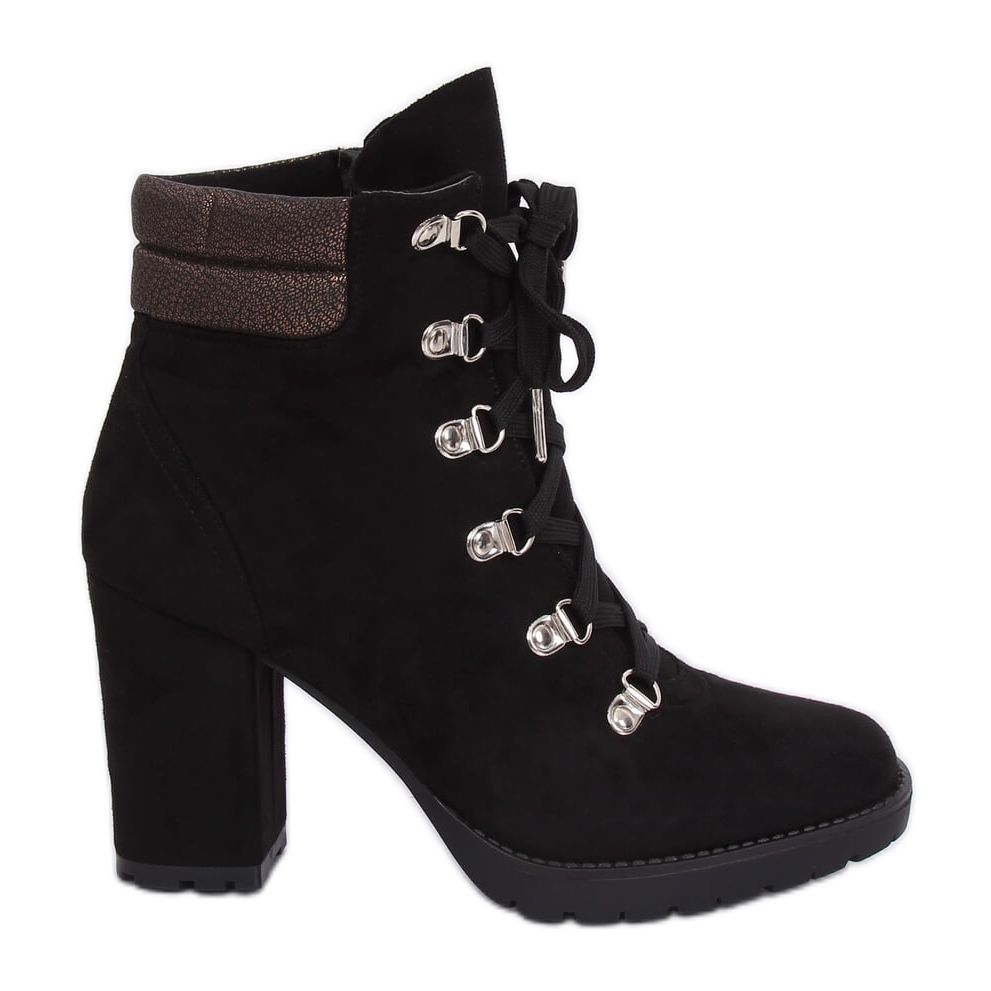 Löydä ainutlaatuiset korkeakorkoiset mustat Timber-saappaat 8992 Black, joissa yhdistyvät klassinen tyyli ja modernit yksityiskohdat. Nämä mokkanahkaiset naisten nilkkurit, joissa on vakaa, 9 cm korkea kantapää, ovat täydellinen ratkaisu naisille, jotka arvostavat eleganssia ja jokapäiväistä mukavuutta.