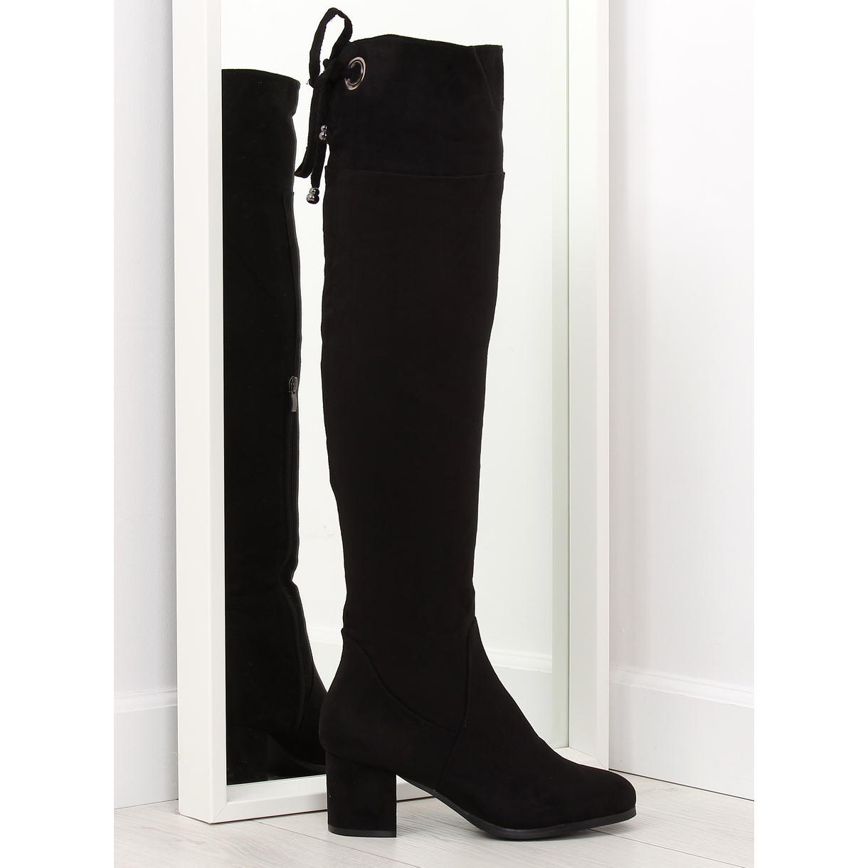Matala, 6 cm korkea, pylvään muotoinen kantapää takaa paitsi tyylikkään viimeistelyn myös maksimaalisen käyttömukavuuden. Käytännön vetoketjun ansiosta kenkien pukeminen ja riisuminen on nopeaa ja helppoa. Mielenkiintoinen elementti on koristeellinen solmio takana, joka lisää kokonaisuuteen ainutlaatuista tyyliä.
