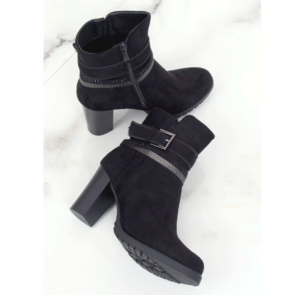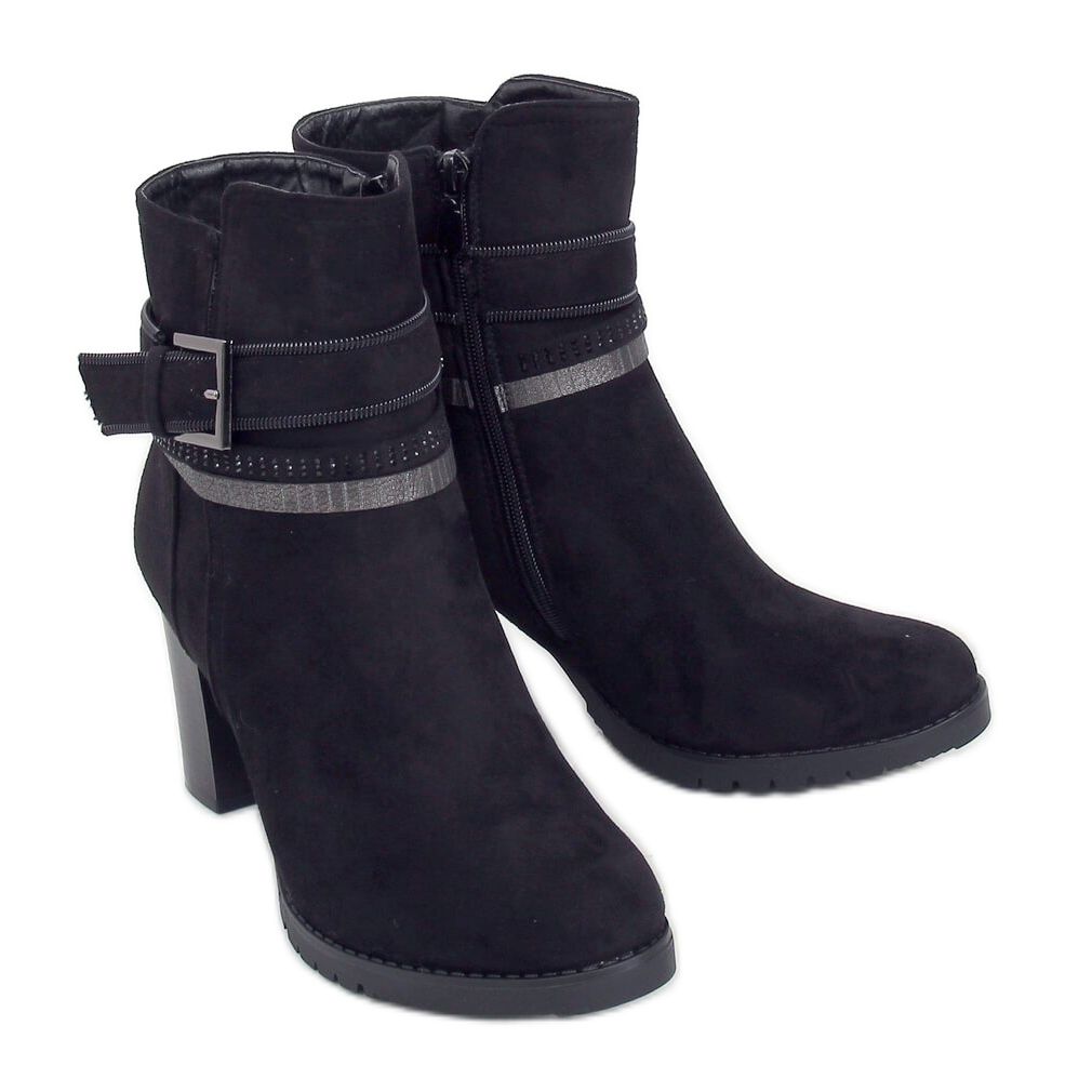 Mustat korkeakorkoiset nilkkurit BH126-KB Black ovat täydellinen valinta jokaiselle naiselle, joka haluaa yhdistää eleganssin mukavuuteen. Nämä tyylikkäät nilkkurit, jotka on koristeltu hienovaraisilla strassilla, täydentävät täydellisesti sekä arkea että muodollisempaa tyyliä. Niiden kaunis, ohut 8 cm kantapää saa ne optisesti pidentämään jalkoja korostaen naisellista vartaloa.