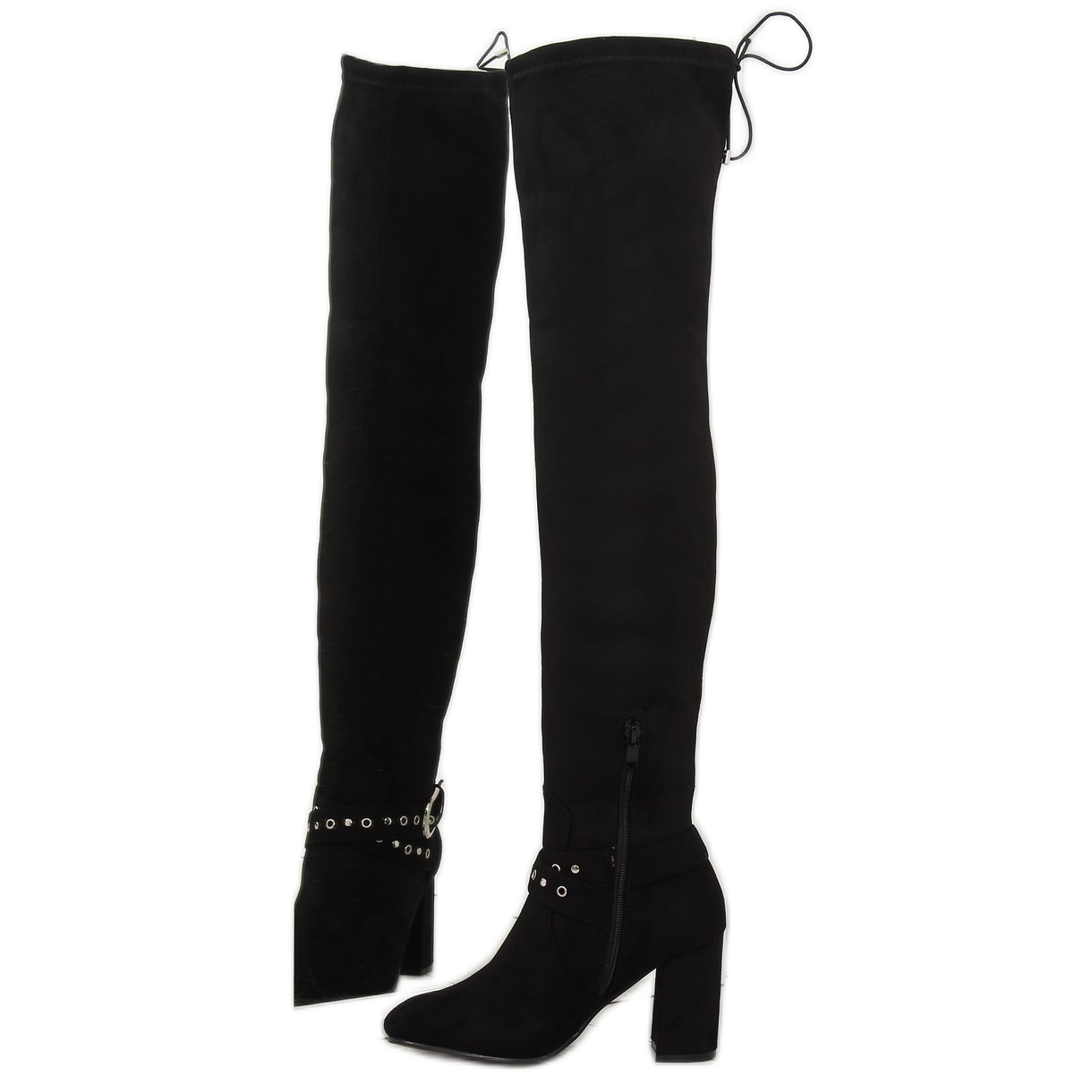 Yläkorkeus polven yläpuolella korostaa niiden eleganttia tyyliä, ja universaali musta väri saa ne sopivat täydellisesti mihin tahansa tyyliin - arkisesta hienostuneempaan. Yhdessä synteettisen pohjan kanssa nämä muskettisoturit ovat täydellinen valinta jokaiselle muotia ja mukavuutta arvostavalle naiselle.