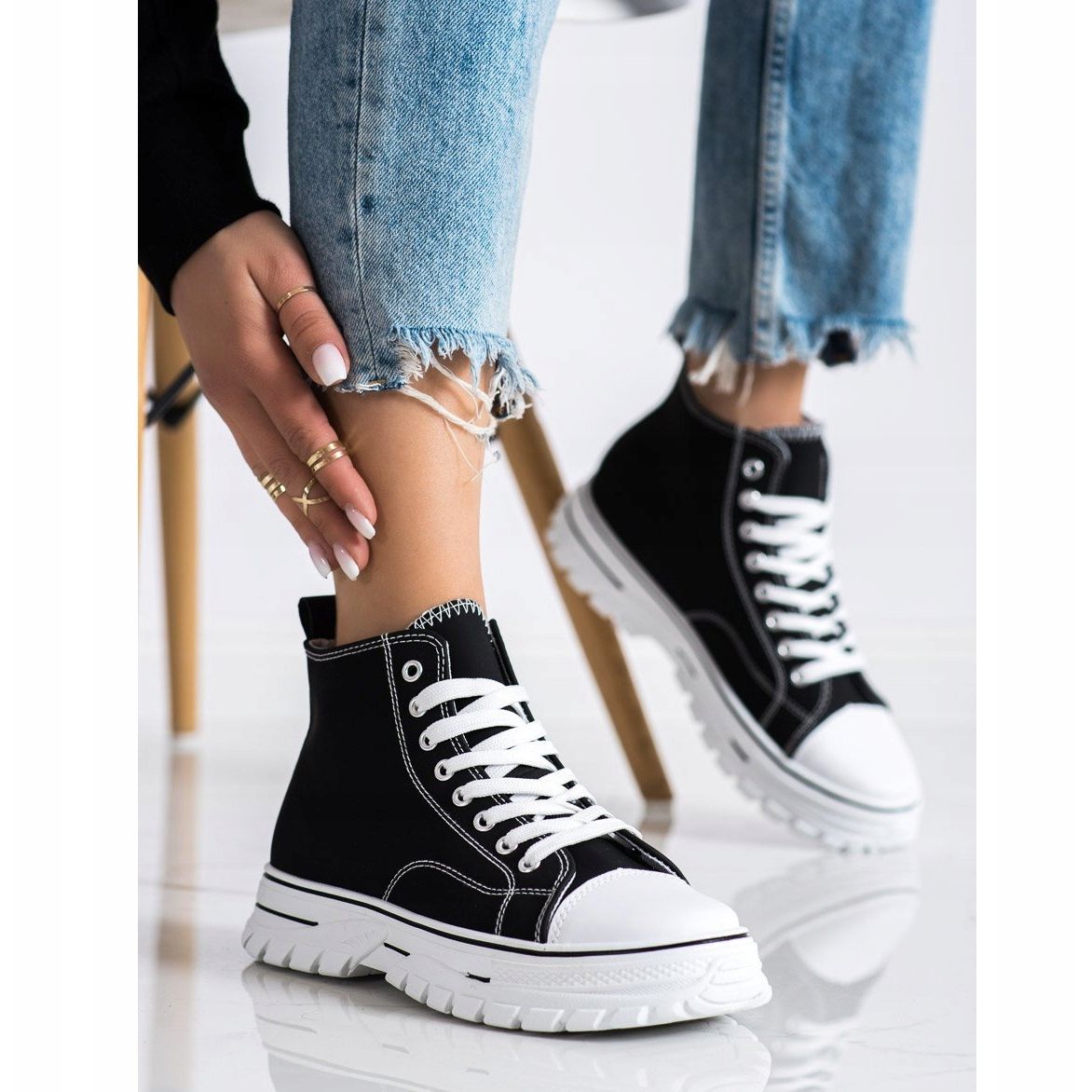 Nämä mustat SHELOVET-lenkkarit ovat täydellinen valinta kevät-/kesäkauteen - täydelliset sekä farkkuihin että kesämekkoihin. Ne on valmistettu kiinnittäen huomiota yksityiskohtiin, ja ne tarjoavat sinulle paitsi tyylikkään ilmeen myös arjen mukavuutta. Valmistajan alkuperäiseen laatikkoon pakattuna ne ovat myös loistava lahjaidea. Valitse SHELOVET ja nauti muodikkaasta ulkonäöstä ja mukavuudesta joka päivä!