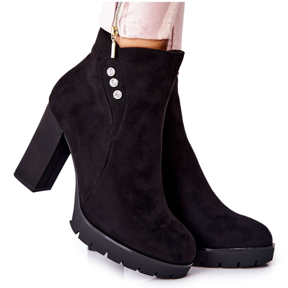 Saappaissa on vakaa 9,5 cm korkea tolppa, joka ei vain lisää korkeutta, vaan myös varmistaa mukavuuden käytössä. Lisäksi 11-senttinen päällinen yhdistettynä koristeellisiin zirkoniin sivulla antaa niille ainutlaatuisen luonteen. Vetoketjun ansiosta kenkien pukeminen ja riisuminen on nopeaa ja kätevää.