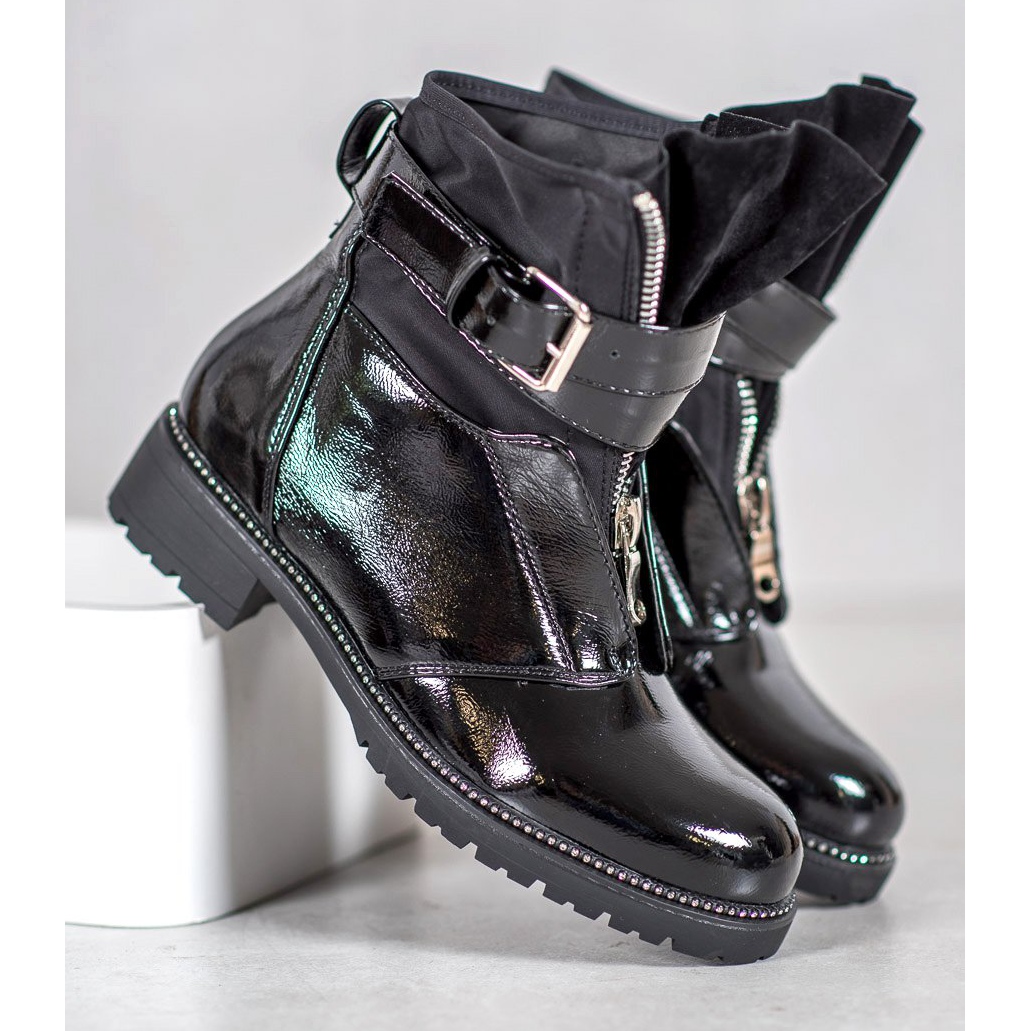 Hämmästy Seastarin mustien patentoitujen saappaiden eleganssista ja ainutlaatuisuudesta. Nämä tyylikkäät naisten kengät, jotka ulottuvat nilkan yläpuolelle, ovat täydellinen valinta naisille, jotka haluavat yhdistää muotia mukavuuteen. Niiden epätavalliset päälliset ja silmiinpistävä vetoketju perinteisten nauhojen sijaan saavat ne näyttämään poikkeuksellisen kiehtovilta.