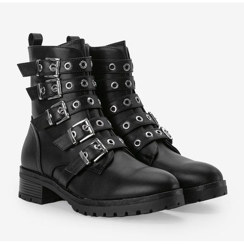 Black Suzan soljet ovat täydellinen valinta naisille, jotka haluavat yhdistää mukavuuden selkeään rock-tyyliin. Nämä tasakorkoiset saappaat erottuvat paitsi muodikkaasta ulkonäöstään myös huolellisesta ekologisesta nahasta tehdystä työstä. Koristeet viiden tyylikkään soljen muodossa yhdistettynä hopeisiin yksityiskohtiin antavat jalkineille luonnetta, joka herättää varmasti huomiota.