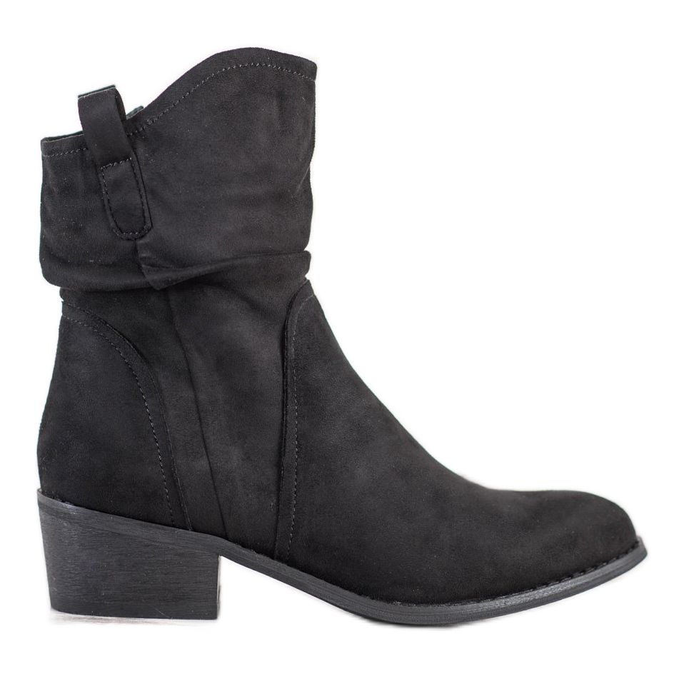 Mustat Evento cowboysaappaat sopivat täydellisesti rentoon tyyliin, minkä ansiosta ne on helppo yhdistää erilaisiin asuihin. Niiden pyöreä varvas antaa niille hienovaraisen ja klassisen ilmeen, ja kuvioiden puute tekee niistä erittäin universaaleja.