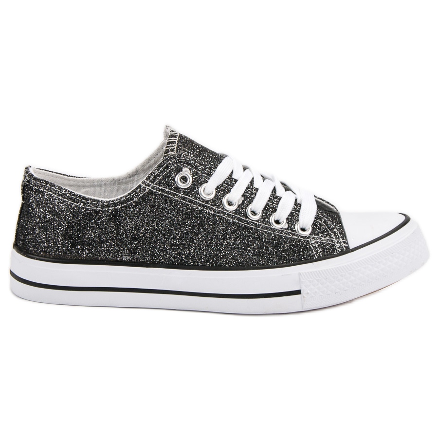 Esittelemme mustat lenkkarit glitterillä, jotka ovat täydellinen yhdistelmä klassista ja modernia. Niiden minimalistinen muotoilu valkoisella pohjalla on tyylikäs, ja glitterin lisäys lisää hieman kiiltoa ja ainutlaatuisuutta. Tämä on ihanteellinen tarjous naisille, jotka haluavat elävöittää jokapäiväistä tyyliään mukavuudesta tinkimättä.
