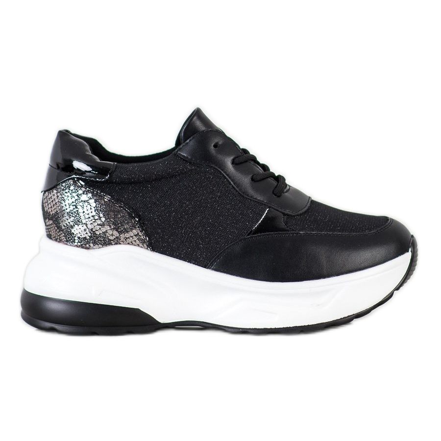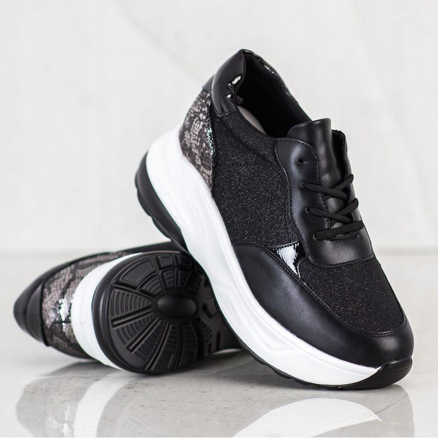 Black Sneakers with Glitter valmistajalta Bestelle ovat täydellinen valinta naisille, jotka haluavat yhdistää mukavuuden tyylikkääseen viimeistelyyn. Nämä ainutlaatuiset mustat kengät, jotka on rikastettu hopeisella glitterillä, herättävät varmasti huomion ja korostavat jokaisen niitä käyttävän naisen yksilöllistä tyyliä.