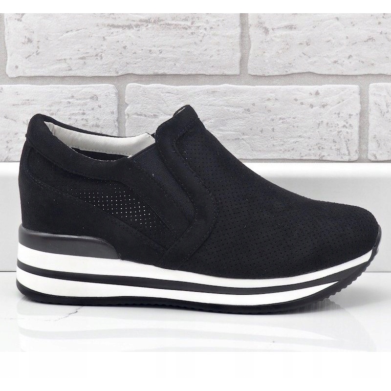 Mustat RQ259 harjakattoiset wedge-lenkkarit ovat täydellinen valinta naisille, jotka arvostavat mukavuutta yhdistettynä tyyliin. Nämä laadukkaasta nahkamaisesta materiaalista valmistetut lenkkarit yhdistävät eleganssin urheilulliseen luonneeseen, mikä tekee niistä täydelliset eri tyyleihin. Universaali musta väri tekee niistä sopivia sekä arkeen että muodollisempiin tilaisuuksiin.