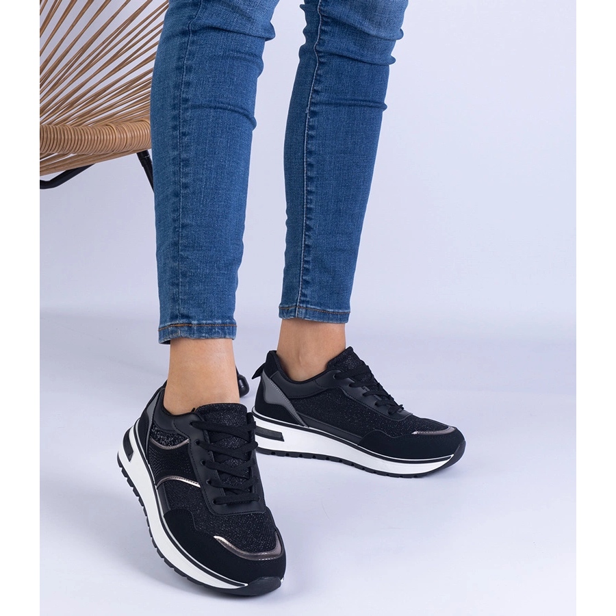 Yksityiskohdat: Mustat lenkkarit koristeltu kimaltelevat ja zirkonit