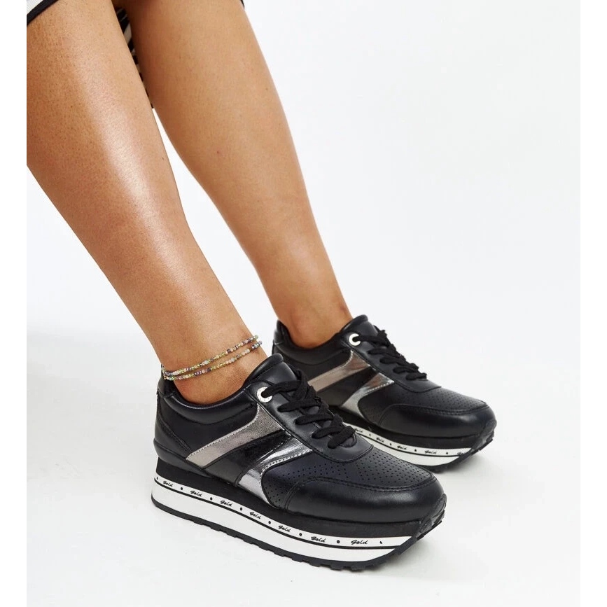 Mustat lenkkarit korkealla pohjalla Mehari on pakollinen jokaiselle muotin rakastajalle ja mukavuudelle. Laadukkaista materiaaleista valmistettu, näissä matalissa urheilukengissä yhdistyvät moderni muotoilu ja ainutlaatuinen toiminnallisuus. Heidän ominainen, metallinen kiilto antaa heille ainutlaatuisen ilmeen, joka sopii täydellisesti uusimpiin katuasujen suuntauksiin.