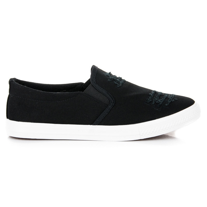 Kankaasta valmistetut lenkkarit eivät ole vain kevyitä, vaan myös ilmavia, mikä tekee niistä täydelliset lämpimiin päiviin. Matalat, mustat pyöreäkärkiset jalkineet ovat universaali valinta, joka yhdistetään helposti eri tyyleihin - farkuista hameisiin ja shortseihin.