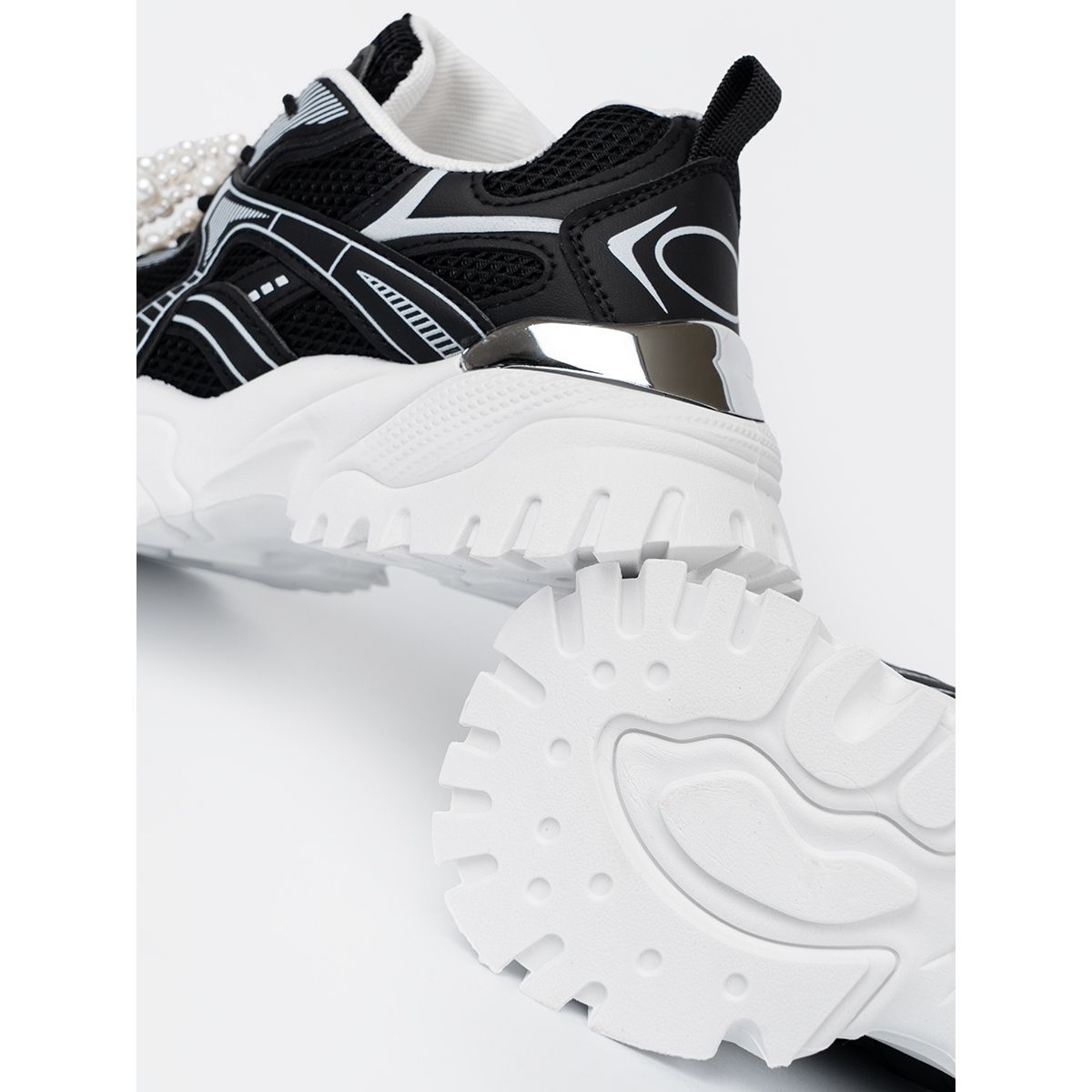 Yksityiskohdat: Shelvt Mustat lenkkarit valkoisella jousella ja helmillä