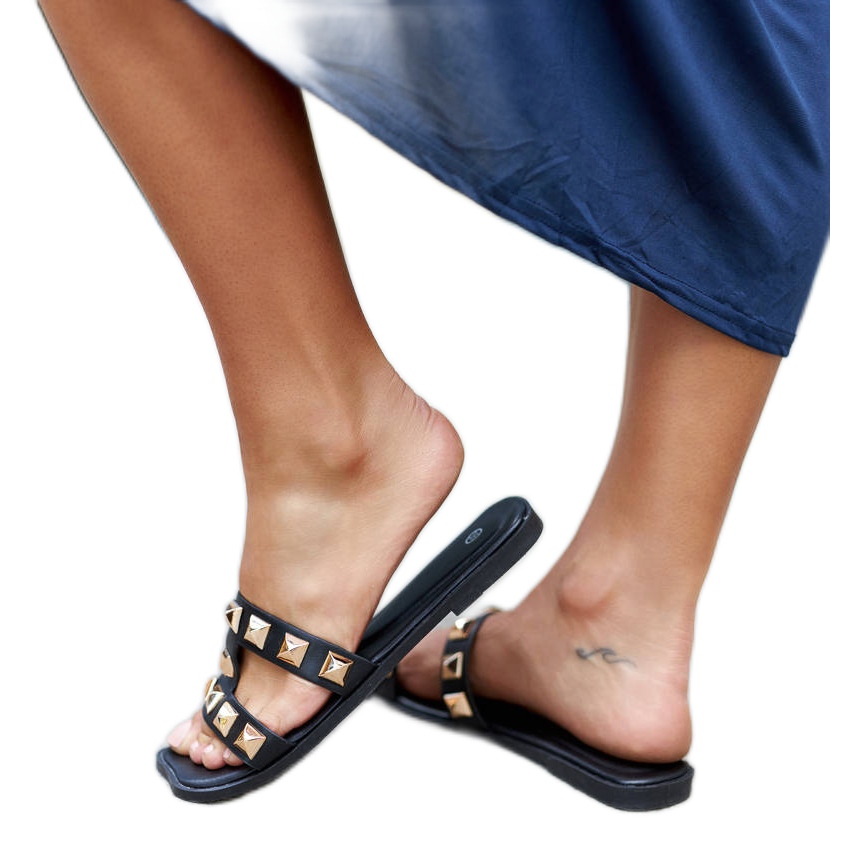 Tutustu mustien Agnanon nastoitettujen varvastossojen tarjoamaan poikkeukselliseen eleganssiin ja mukavuuteen, jotka on luotu moderneille naisille, jotka haluavat yhdistää tyylin arjen mukavuuteen. Laadukkaasta ekologisesta nahasta valmistetut varvastossut eivät ole pelkästään houkuttelevia, vaan myös kestäviä. Niiden universaali musta väri ja hienovaraiset kultaiset aksentit tekevät niistä täydellisen sopivan kesätrendeihin, ja ne sopivat moniin tyyleihin - arkisesta hieman elegantimpaan.