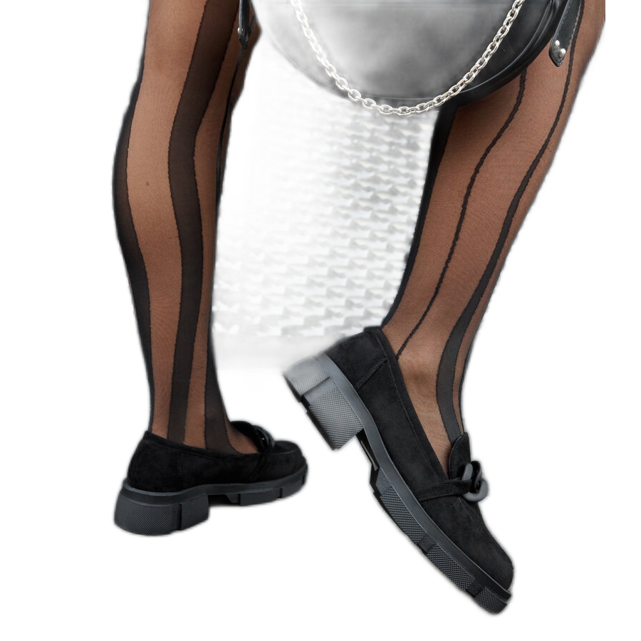Mustat loaferit ekologisella mokkanahkaketjulla ovat täydellinen valinta moderneille naisille, jotka haluavat yhdistää mukavuuden eleganssiin. Ekologisesta mokkanahkasta valmistetut tyylikkäät kengät näyttävät erittäin vaikuttavilta ja klassisen mustan värinsä ansiosta ne sopivat moneen kesäiseen tyyliin. Hienovaraisella ketjulla koristeltu GD-XR-119C-malli herättää huomiota ja lisää luonnetta niin arkeen kuin muodollisempiinkin asuihin.