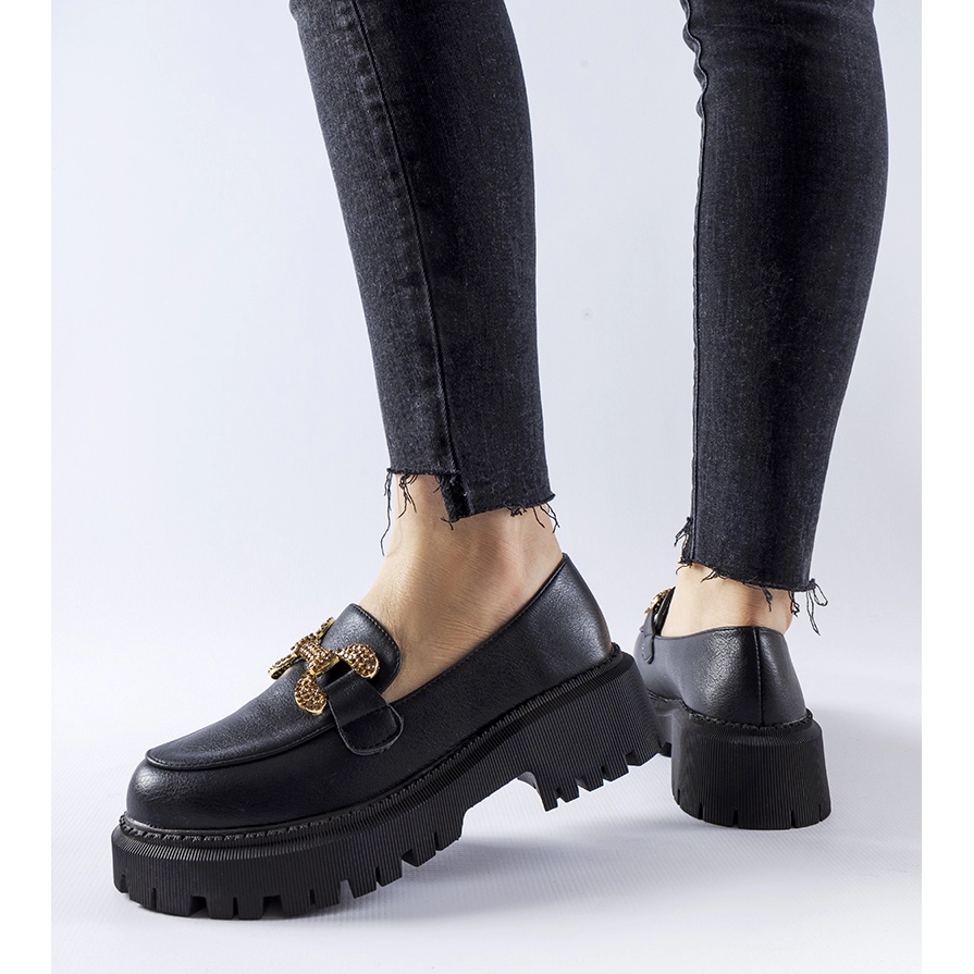 - Malli: H8-309 Mustat zirkoneilla koristellut loaferit