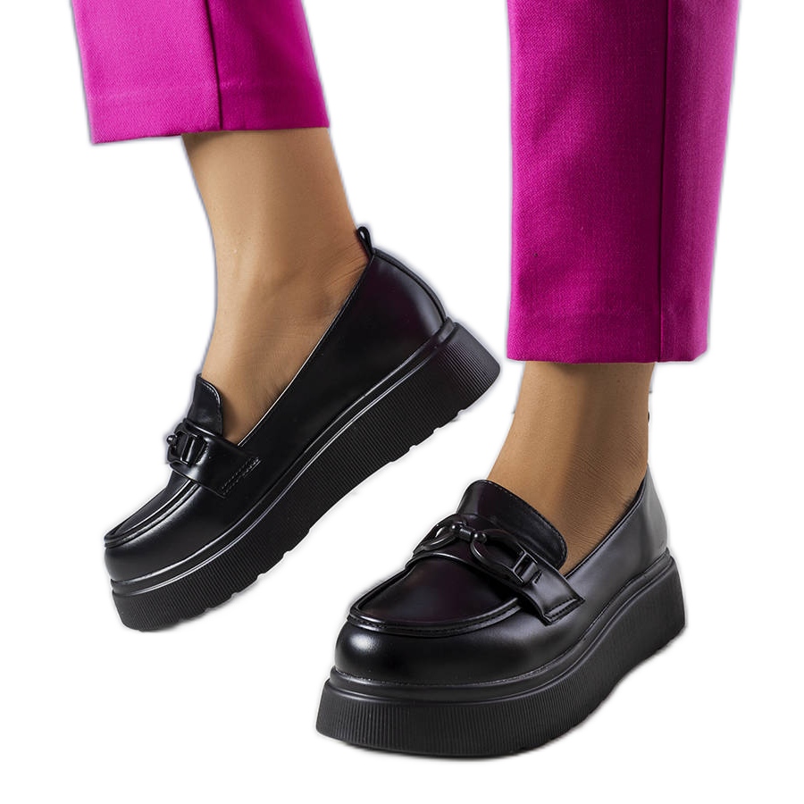 Löydä eleganssia ja mukavuutta mustilla Gagnon lordilla, jotka kiiloin koristeltuina täydentävät täydellisesti mitä tahansa rentoa tyyliä. Nämä korkealaatuisesta ekologisesta nahasta valmistetut naisten mokasiinit tarjoavat paitsi esteettisen ulkonäön myös erinomaisen käyttömukavuuden.