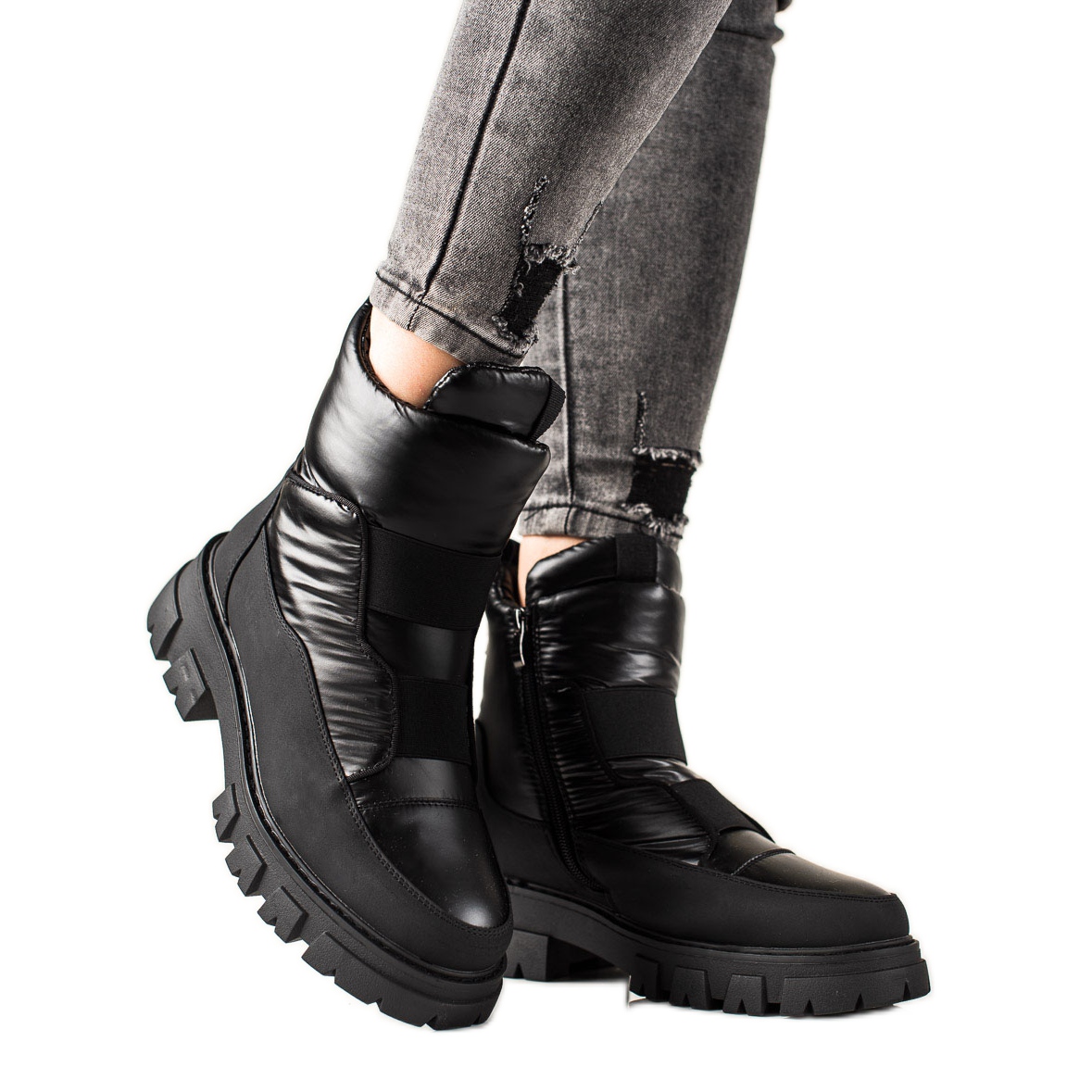 Nämä vetoketjulla kiinnitetyt lumikengät ovat erittäin käytännöllisiä ja helppoja pukea jalkaan. Lisäksi 3 cm korkea alusta ja 5 cm kantapää lisäävät eleganssia, joten ne sopivat niin arkeen kuin erikoistilaisuuksiinkin.