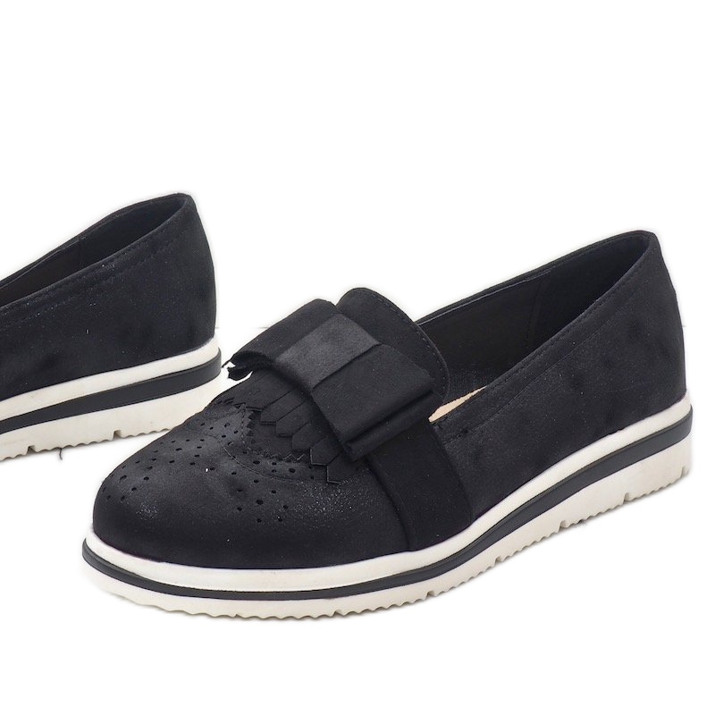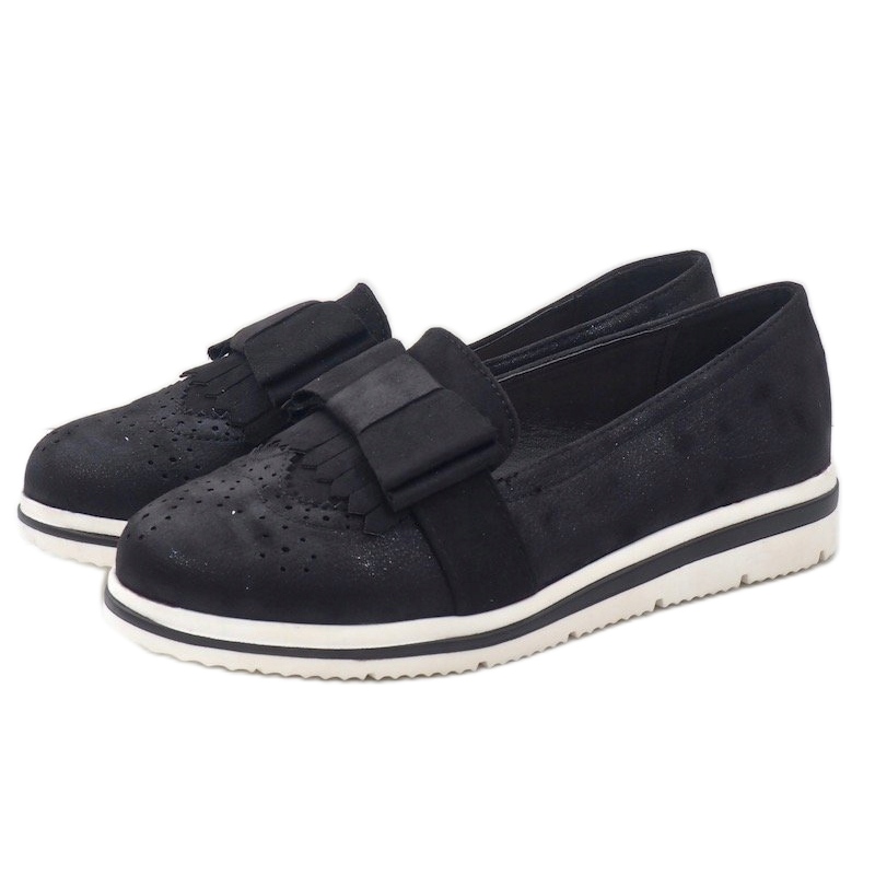 Näiden kenkien lisäetu on rusetti, joka lisää niihin tyttömäistä charmia. Kengät ovat saatavilla klassisen mustan värisenä, minkä ansiosta ne sopivat täydellisesti erilaisiin sarjoihin. Synteettisestä materiaalista valmistettu pohja ja ekologinen pohjallinen takaavat kestävyyden ja helpon hoidon.